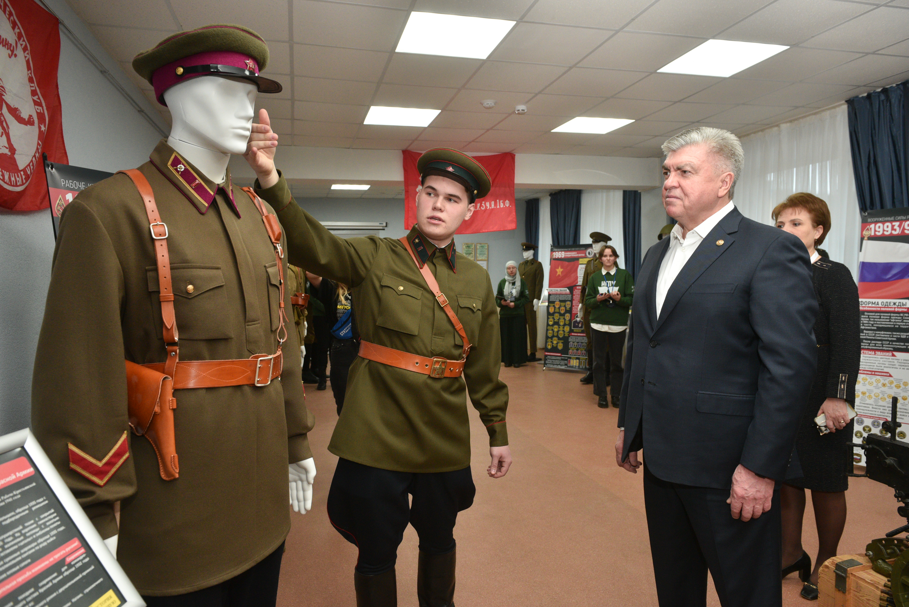 истории военной формы Российской армии в разные периоды ее существования. В зале представлены 12 манекенов. Студент НГПУ Эмиль Кирамов подробно рассказал мэру и присутствующим о форме.