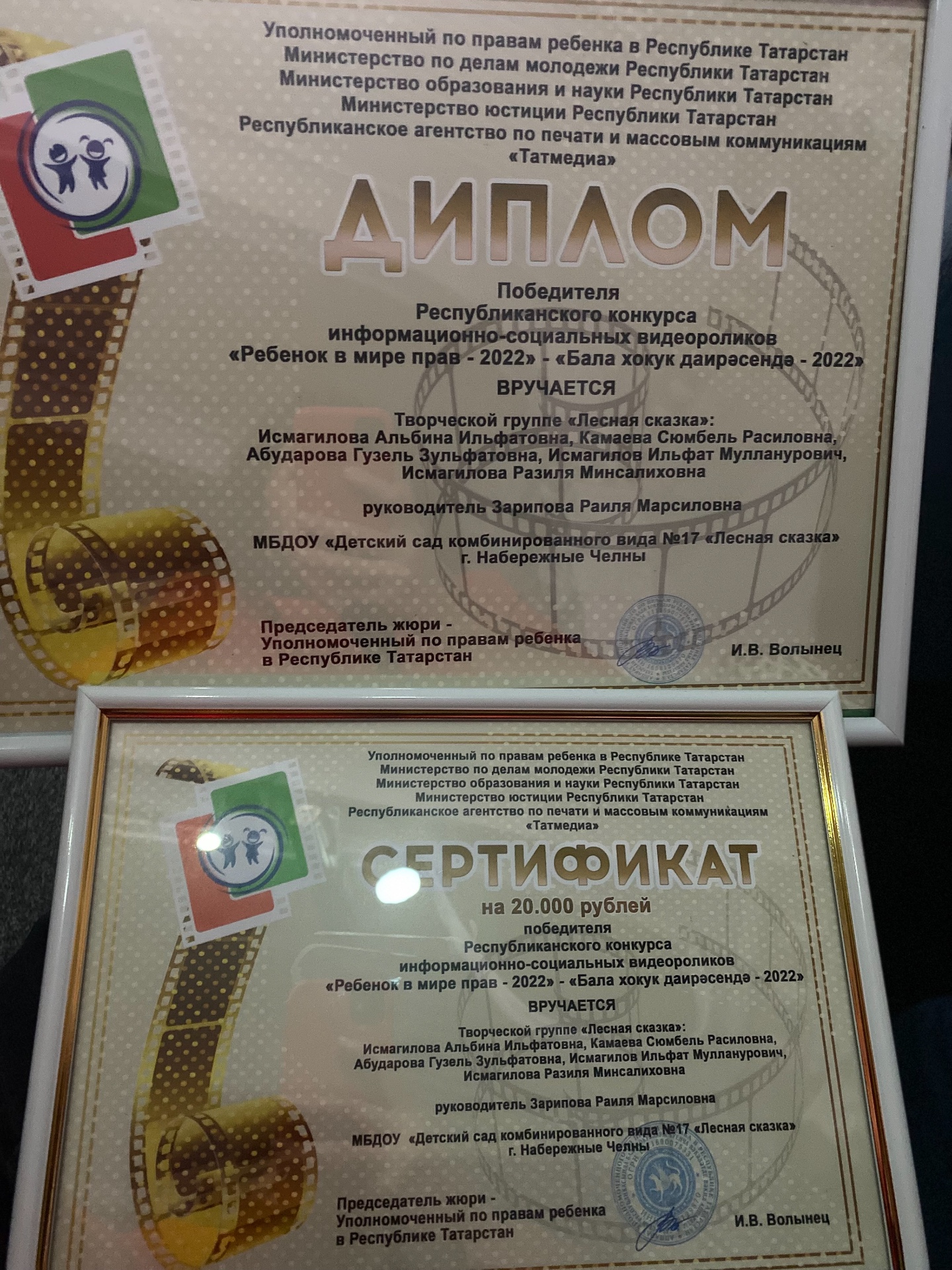 В концертном зале «Московский» города Казань состоялась церемония награждения победителей VIII Республиканского конкурса информационно-социальных видеороликов «Ребёнок в мире прав» - «Бала хокук даирәсендә».