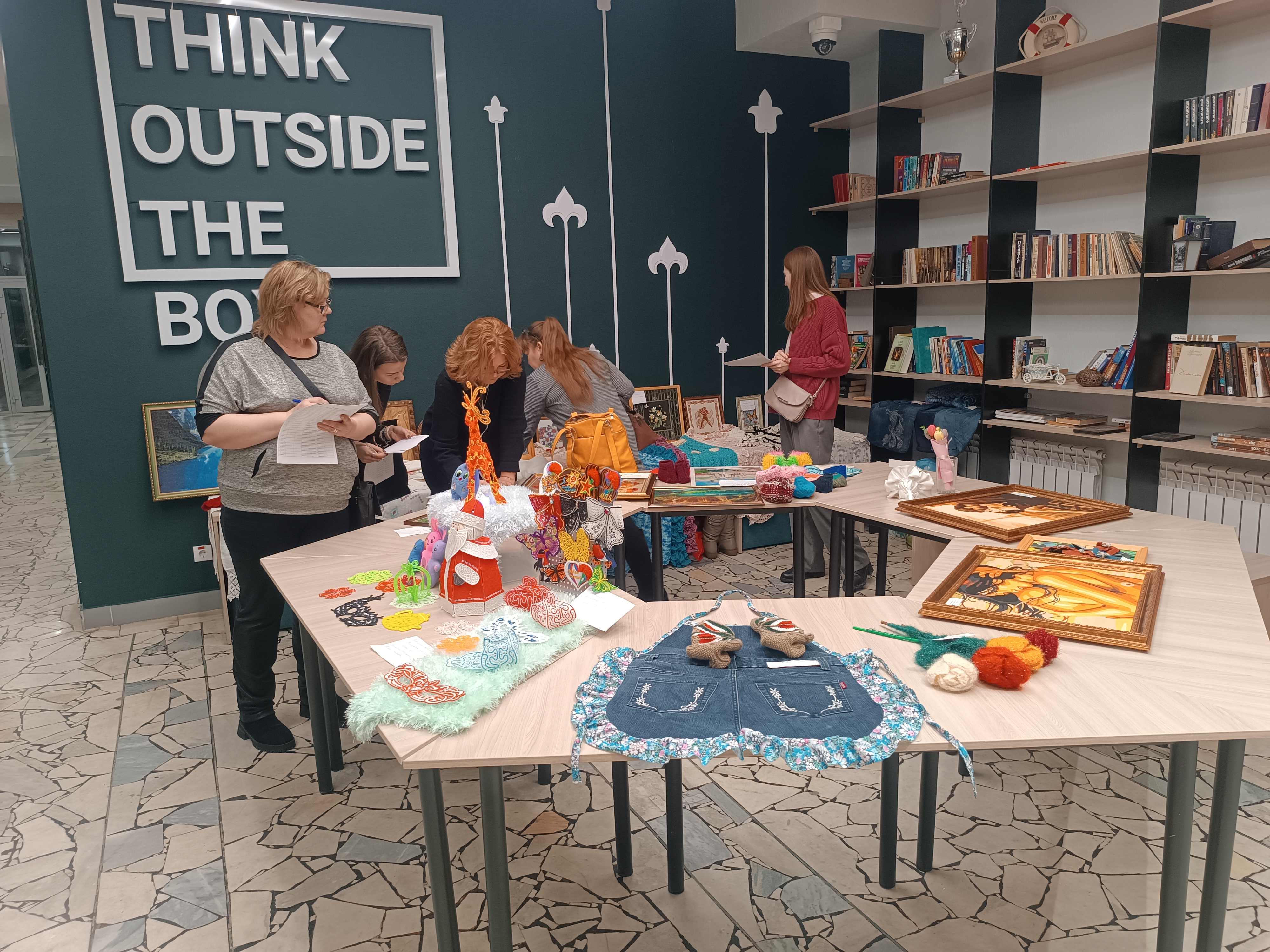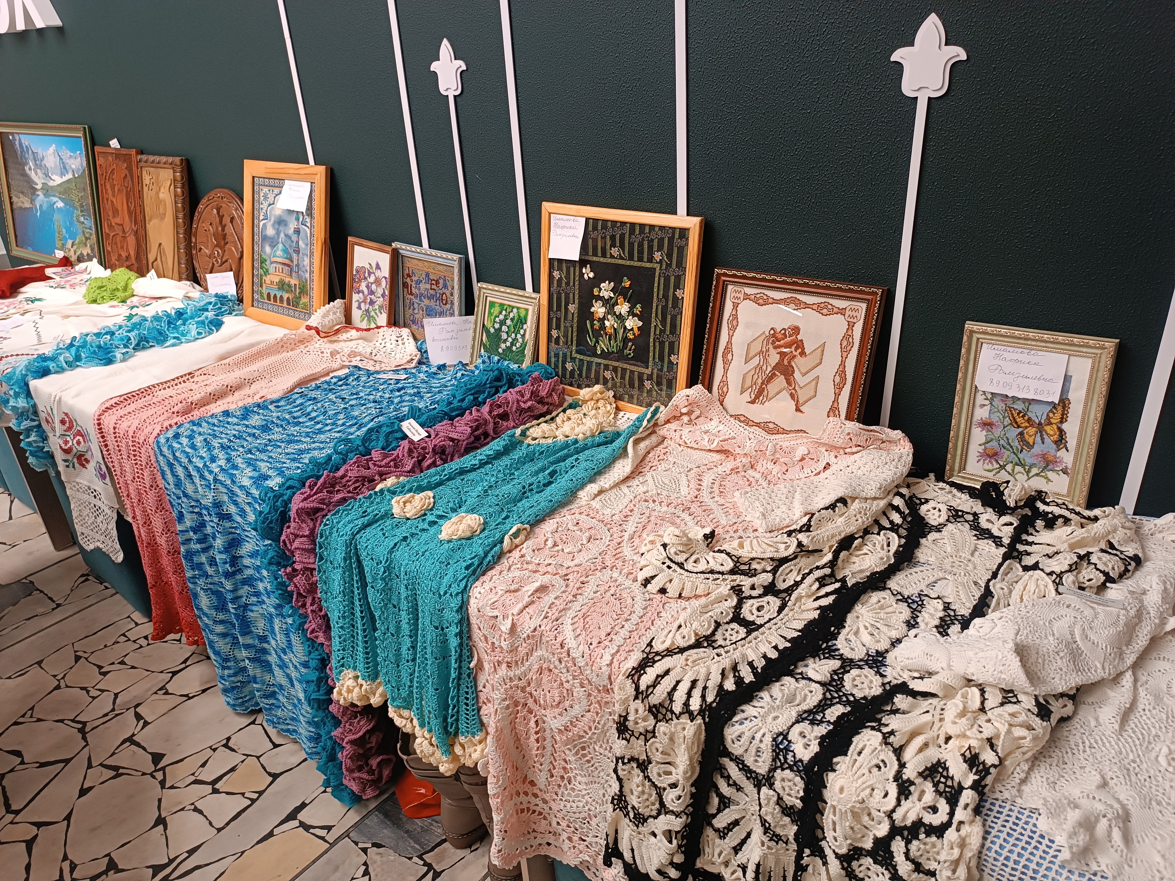 Представили свои работы на выставке декоративно-прикладного творчества. Использовались такие техники, как резьба по дереву, бисероплетение, вышивка, вязание, оригами, живопись и многое другое.