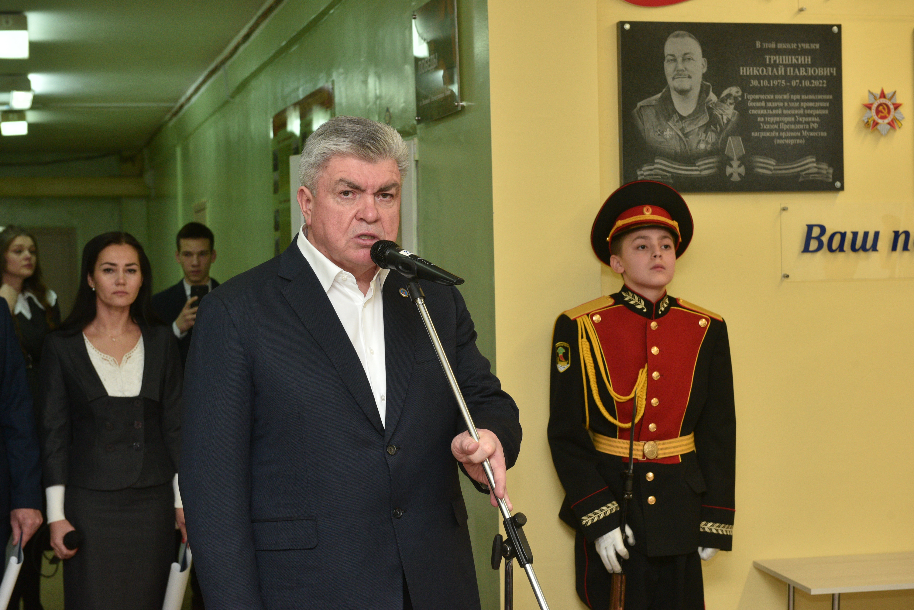 Открыл мемориальную табличку Николаю Тришкину его старший сын.