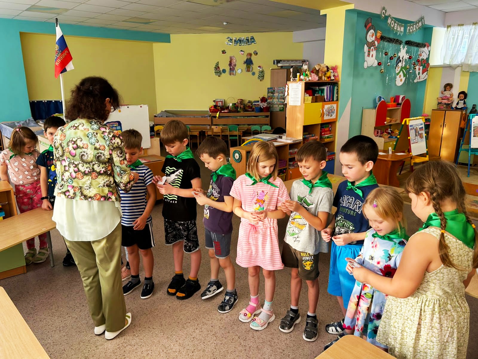 В детском саду №3 «Эллюки» в подготовительных к школе группах провели патриотические занятия на тему «Посвящение в волонтеры», «Символы России».