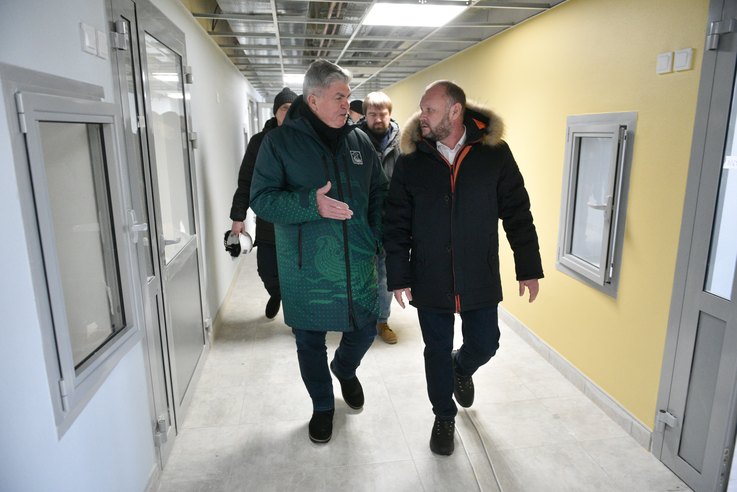 Далее Наиль Магдеев посетил инфекционную больницу. Здесь строители завершают капремонт Блока А и работают на блоке Г.