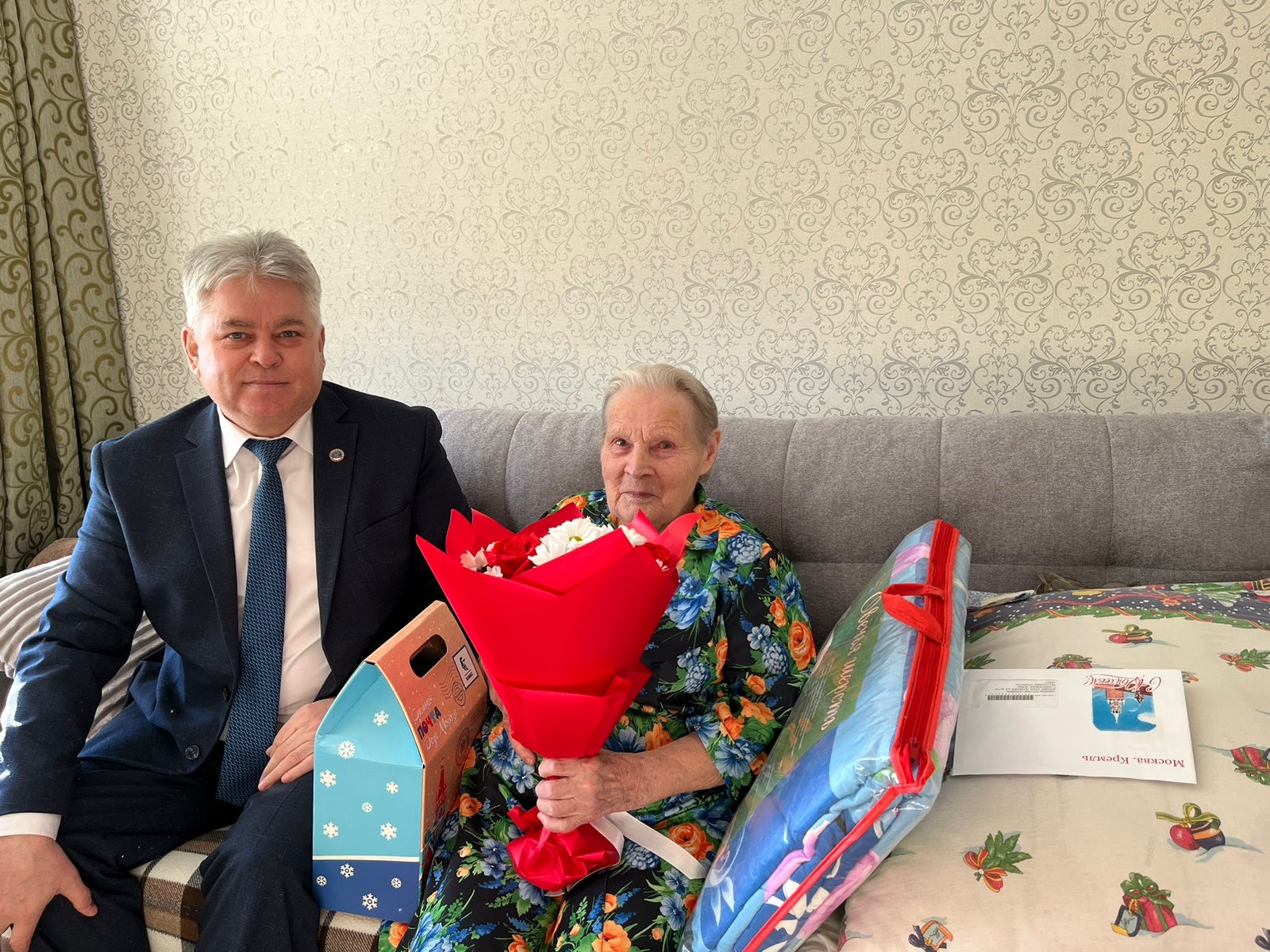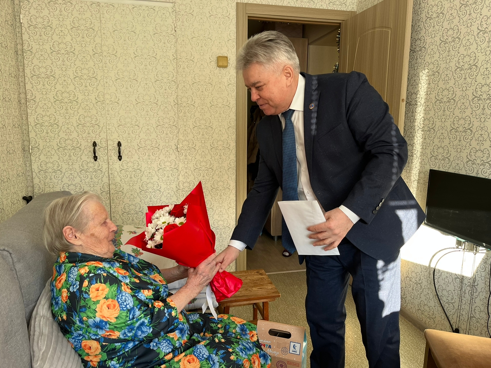 От имени президента Российской Федерации Владимира Путина и мэра города Наиля Магдеева юбиляра поздравил глава администрации Автозаводского района Винер Харисов.