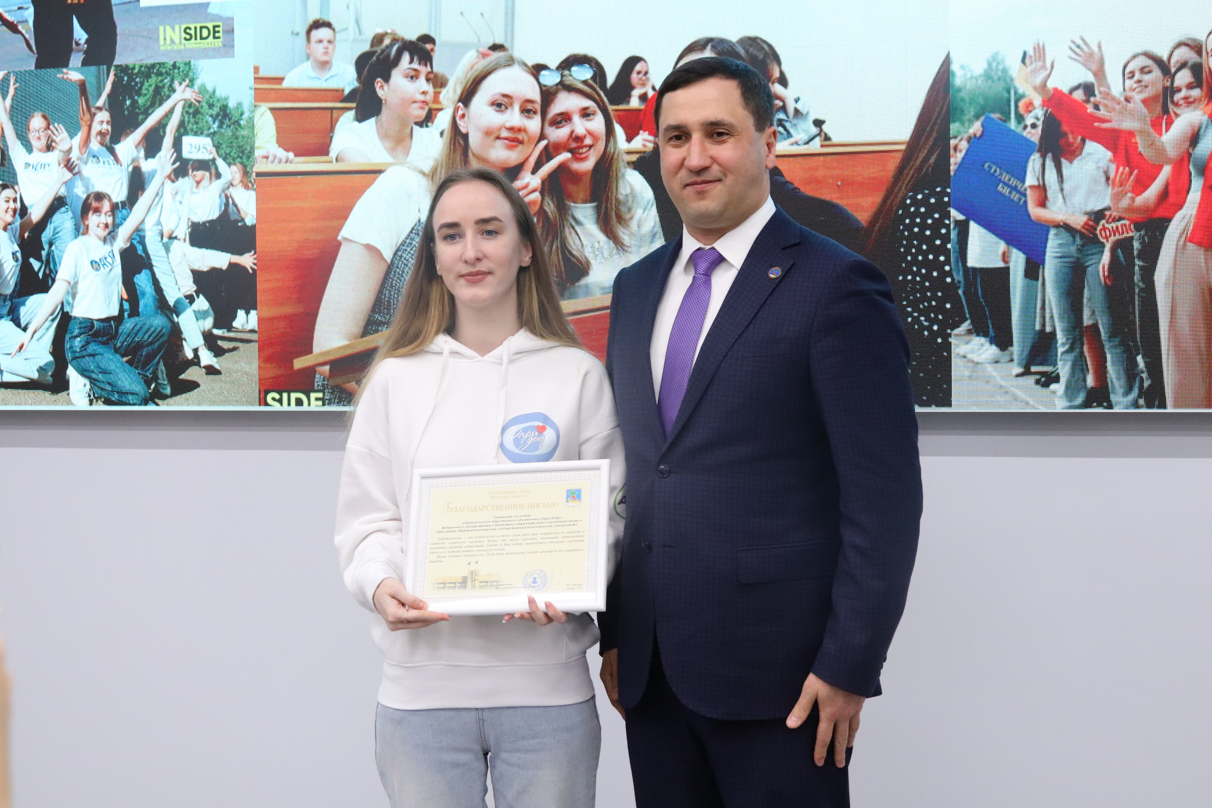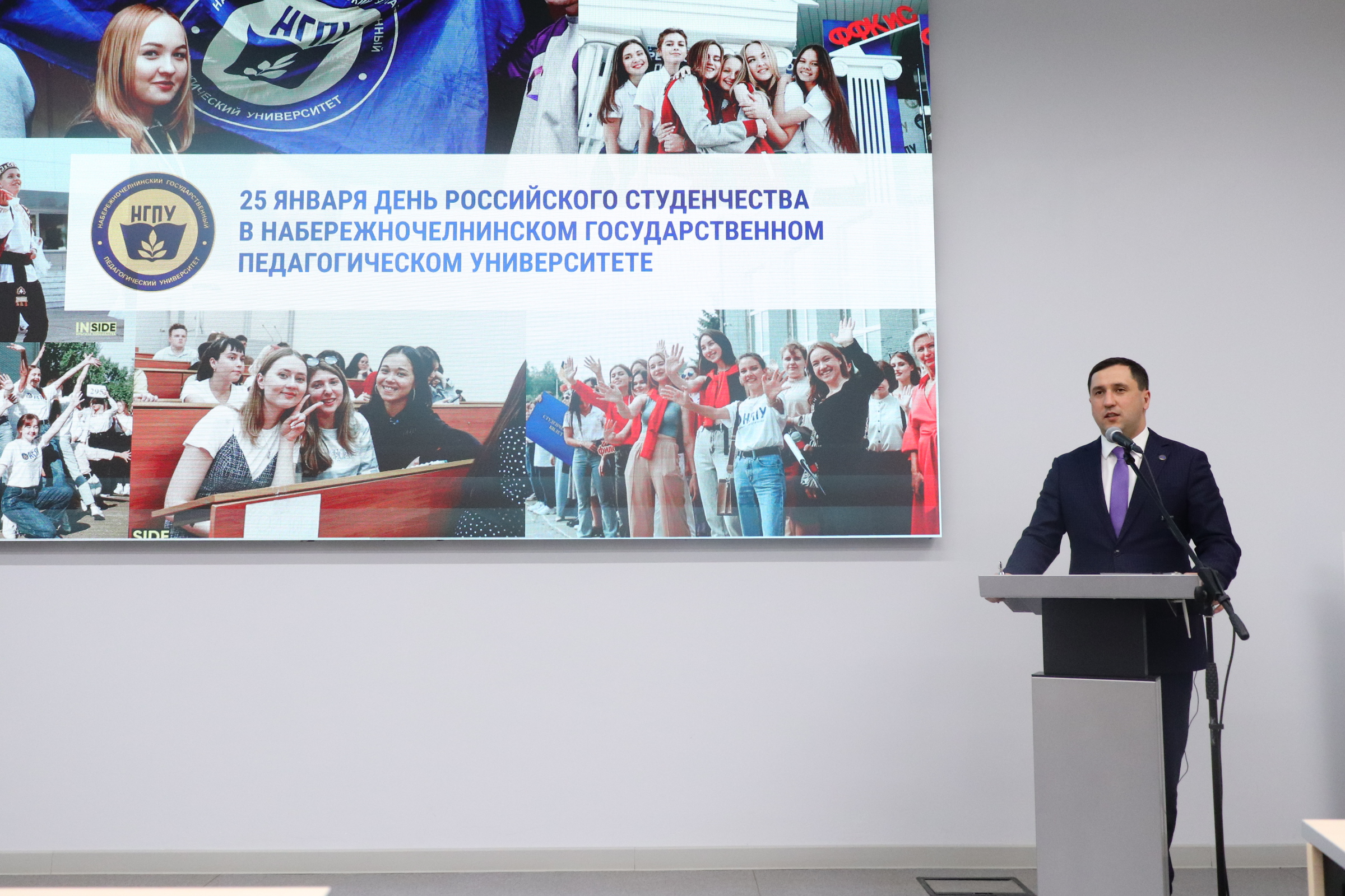Руководитель Исполнительного комитета города Набережные Челны Фарид Салахов поздравил студентов с праздником. Он отметил особый энтузиазм и активность челнинских студентов и вручил Благодарность мэра города руководителю волонтерского объединения НГПУ «Дари Добро» Алине Хабировой.