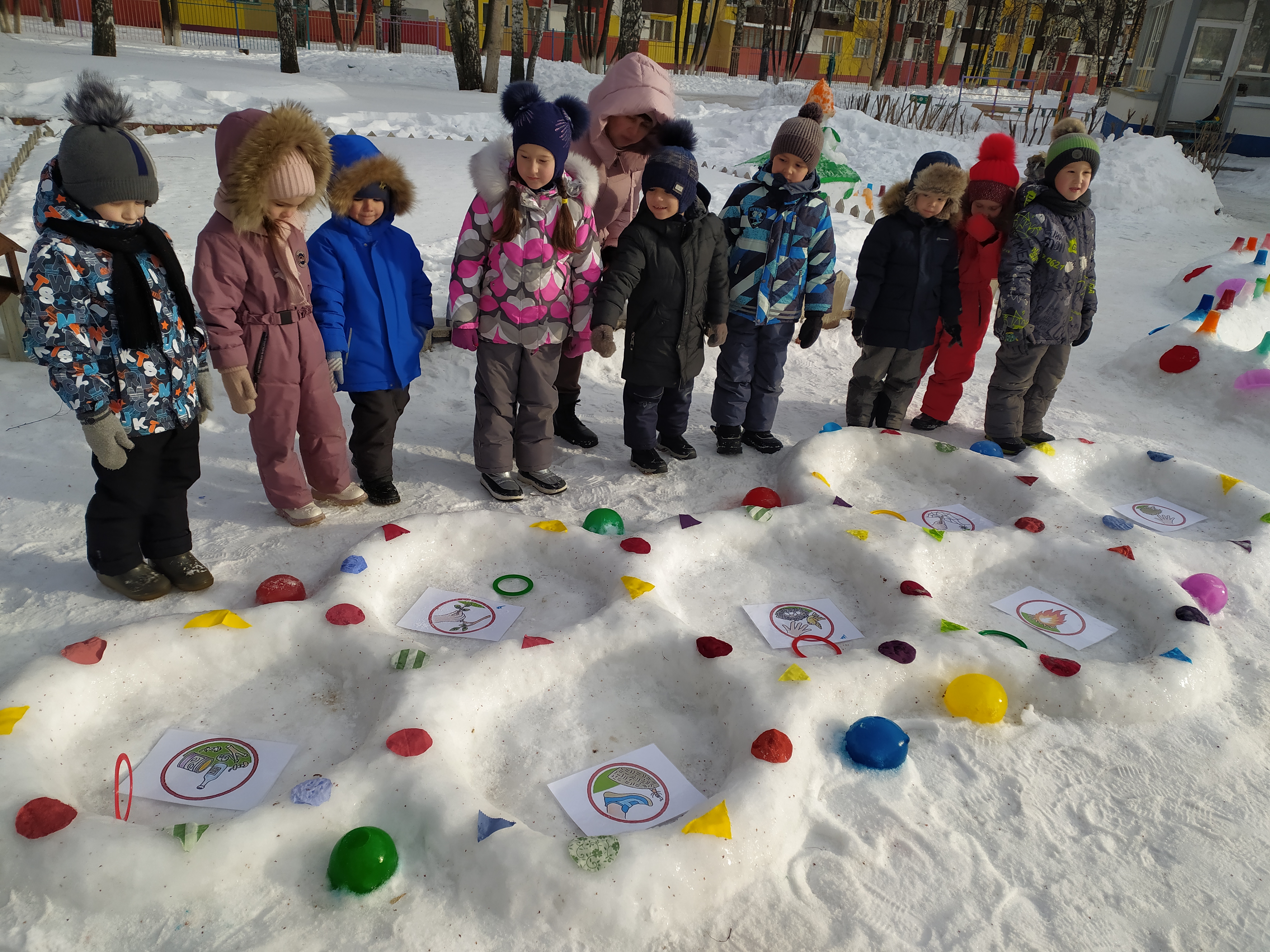В детском саду №28 «Снежинка» в «Снежном городке Эколят» прошел экологический квест для детей старшего дошкольного возраста. Игра проходила по станциям. Воспитанники вместе с эколёнком Тихоней решали проблемы сбора и сортировки мусора, с эколёнком Умницей вспоминали правила поведения человека на природе, посетили «птичью» столовую эколёнка Шалуна.