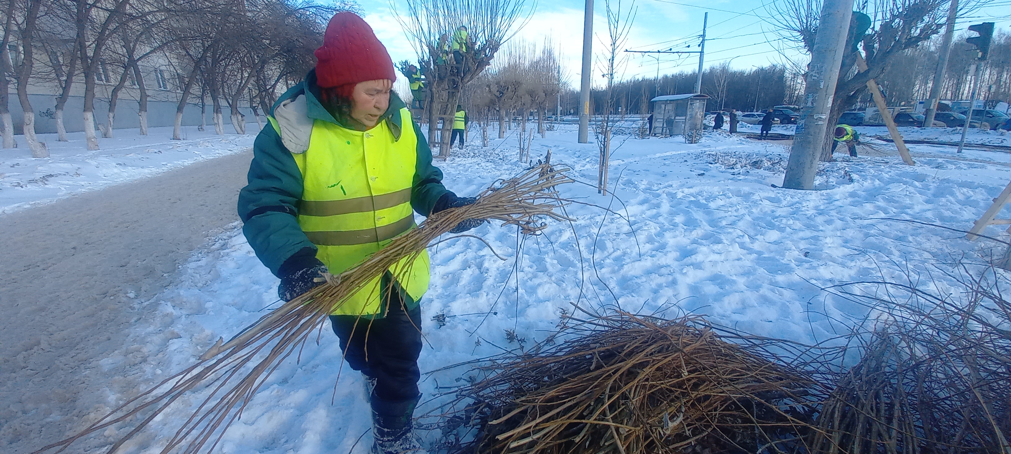 «После срезки все ветки грузим и отправляем в Горзеленхоз. Работаем бригадами. 30 лет уже здесь работаю, омолаживаем наши деревья, чтобы весной было в городе было много зелени», – рассказывает Надежда Глазунова, сотрудник Горзеленхоз.