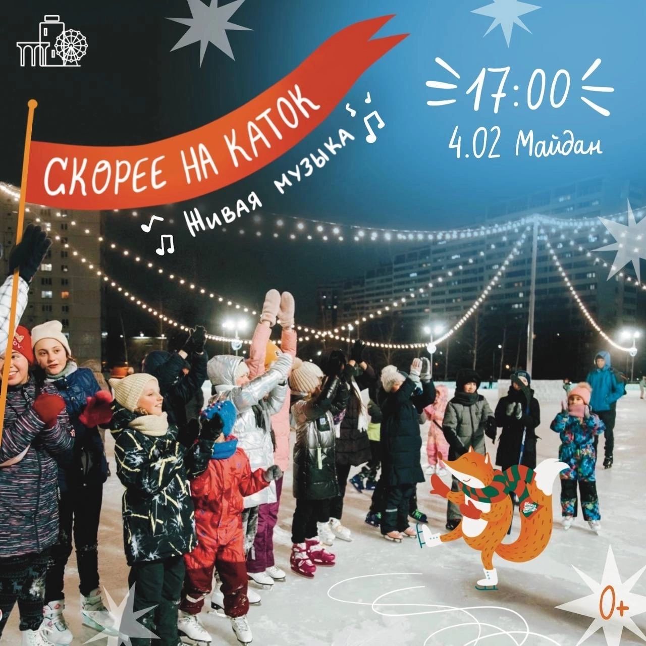 4 февраля в 17:00 на катке площади Майдан можно покататься на коньках и насладиться живой музыкой. Артисты будут вместе со зрителями покорять лед, исполнять авторские песни и каверы.