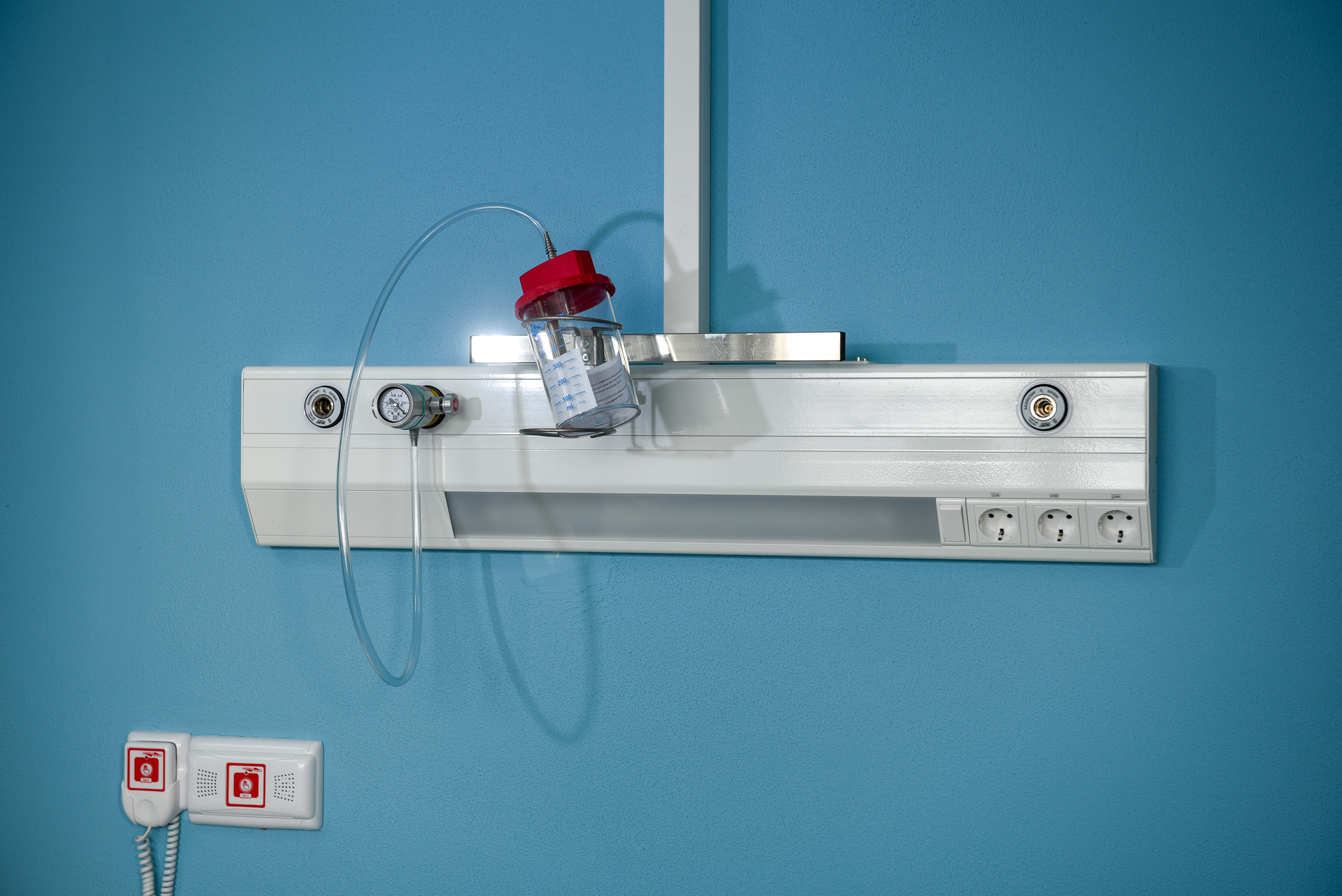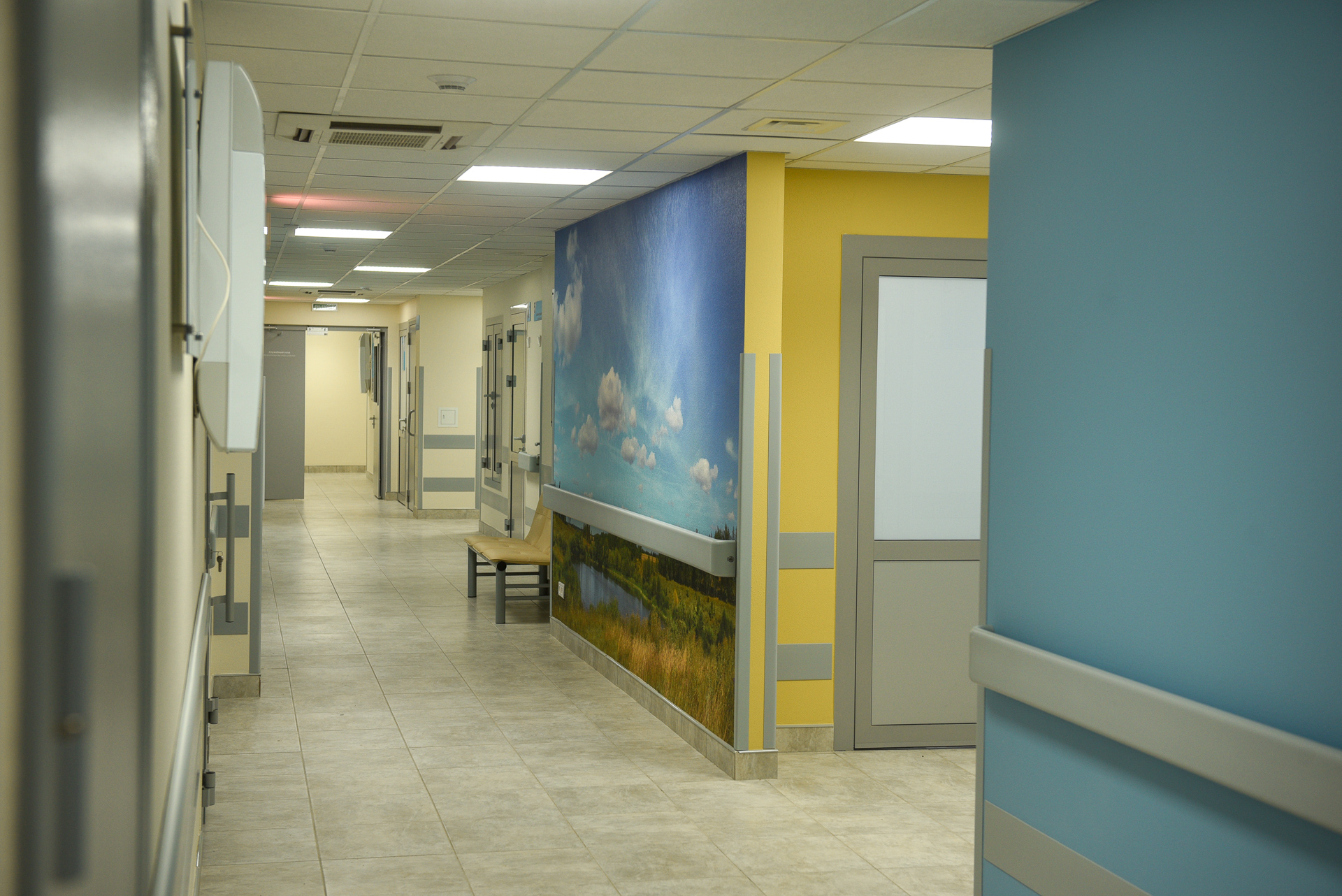Всего блок «А» рассчитан на 56 пациентов. В случае необходимости увеличивается до 72. Отделения и палаты оснащены всем необходимым оборудованием. В палатах установлены медицинские консоли для подачи кислорода, прикроватные мониторы, функциональные кровати, инфузоматы, бытовая техника, установлены кнопки экстренного вызова персонала.