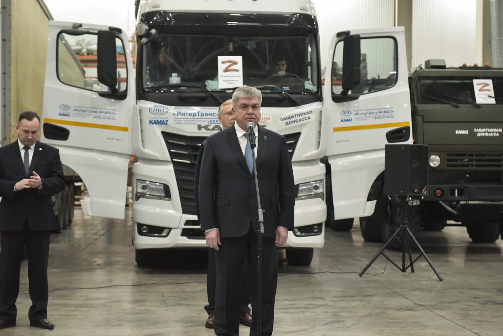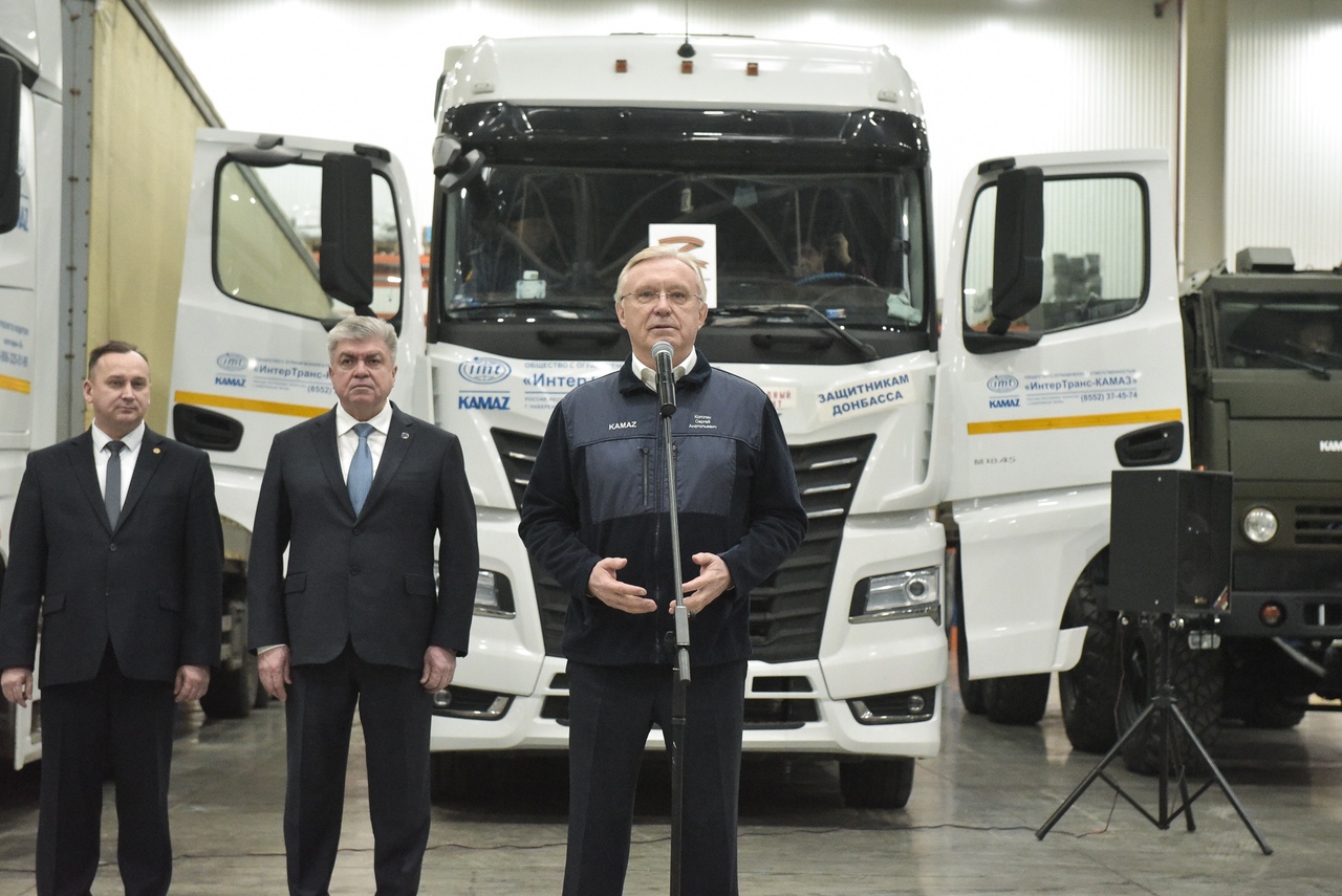 В отправке груза участвовали мэр города Наиль Магдеев, генеральный директор ПАО "КАМАЗ" Сергей Когогин и сотрудники предприятия. Этот груз шефской и гуманитарной помощи собрали работники ПАО "КАМАЗ".