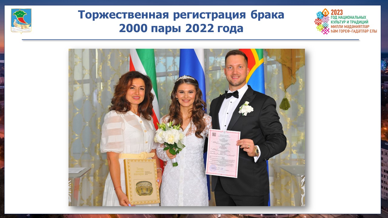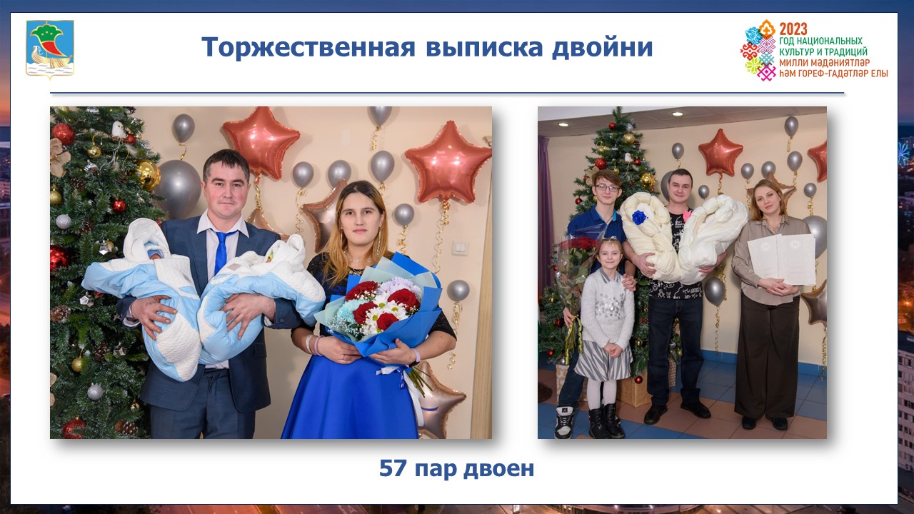 «Радует, что количество многодетных семей в городе увеличивается. В 253 семьях родился четвертый ребенок, в 52 семьях – шестой, в одной семье восьмой ребенок. В одной челнинской семье на свет появился девятый ребенок. В 2022 году около 62 % родившихся детей – вторые и более дети в семье», – поделилась начальник управления ЗАГС Равиля Зарипова.