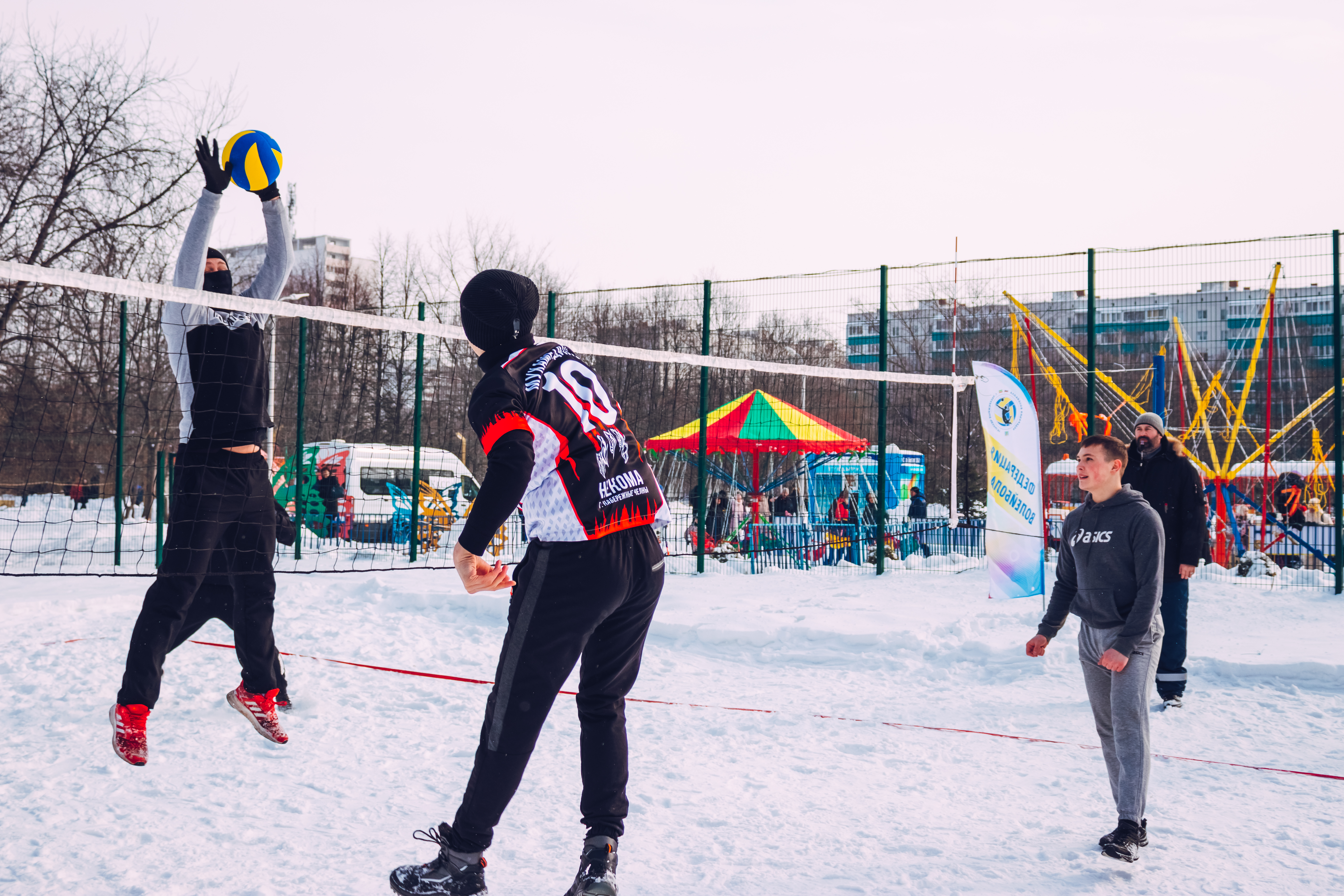 В парке Победы прошел мужской турнир по волейболу на снегу на Кубок Федерации волейбола города Набережные Челны. Подобный турнир прошел в нашем городе в таком масштабе впервые. Заявилось восемь команд из городов Набережные Челны, Казани и Елабуги.