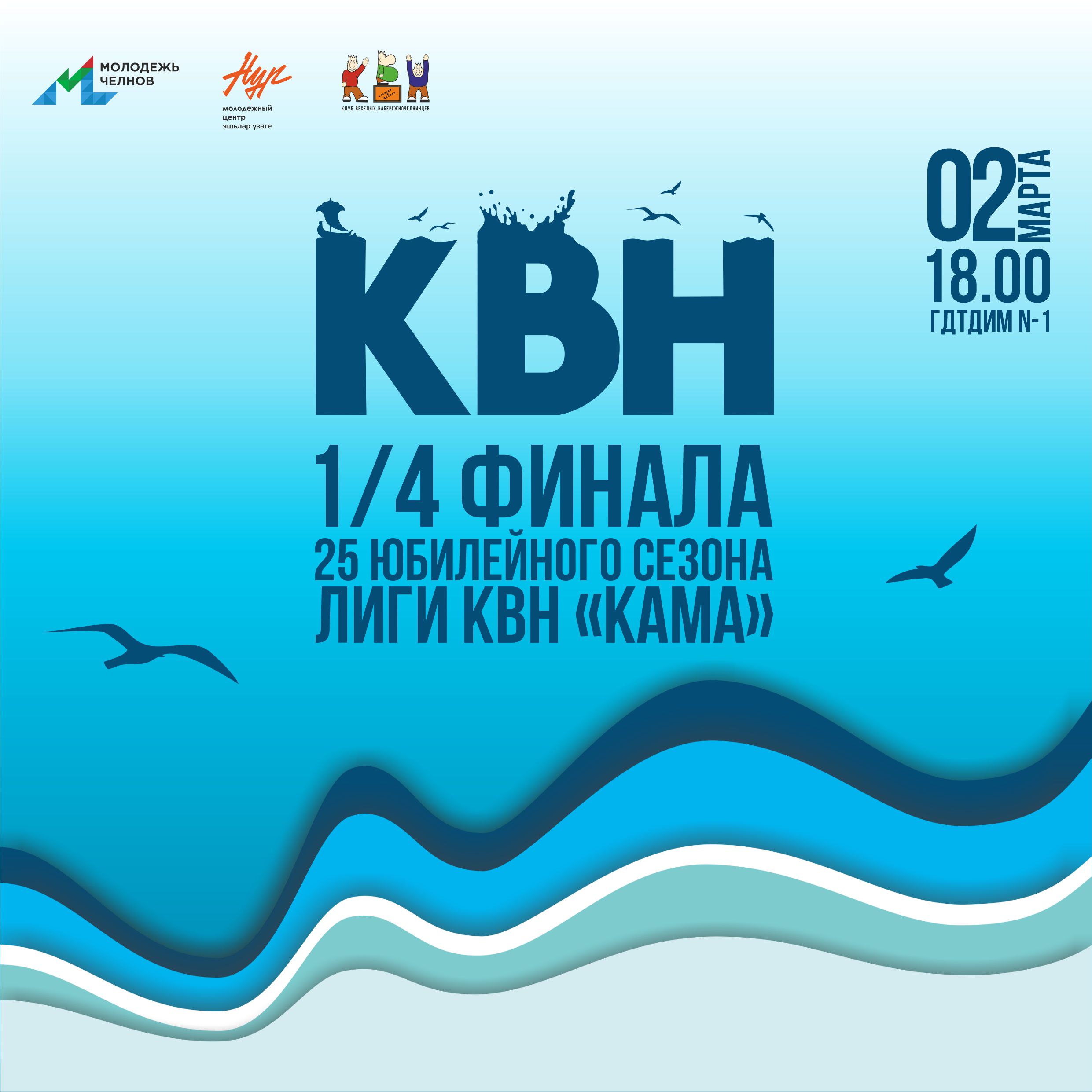 В Набережных Челнах 2 марта в 18:00 в Городском дворце творчества детей и молодежи состоится четверть финала 25 юбилейного сезона студенческой Лиги КВН «КАМА» города Набережные Челны.