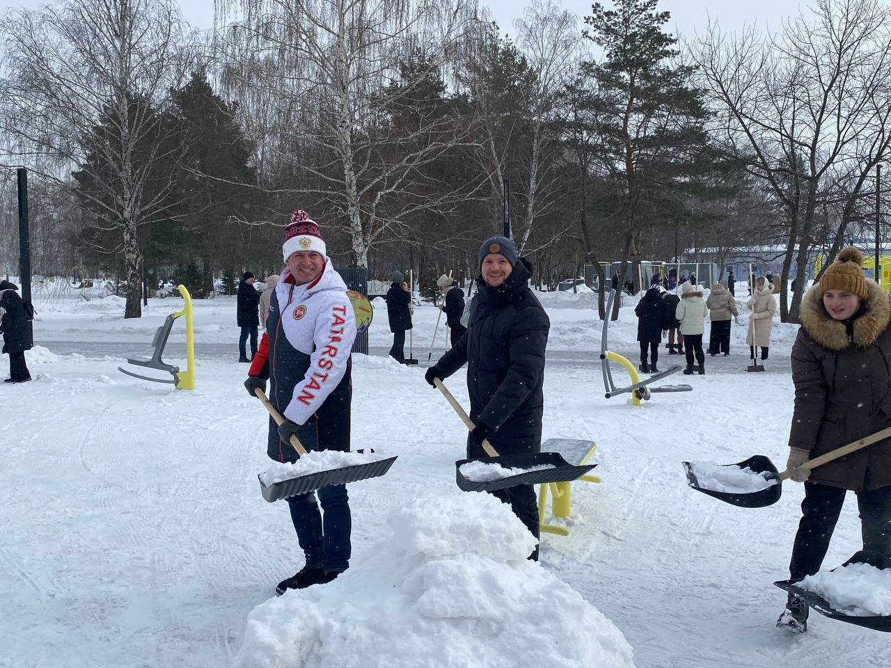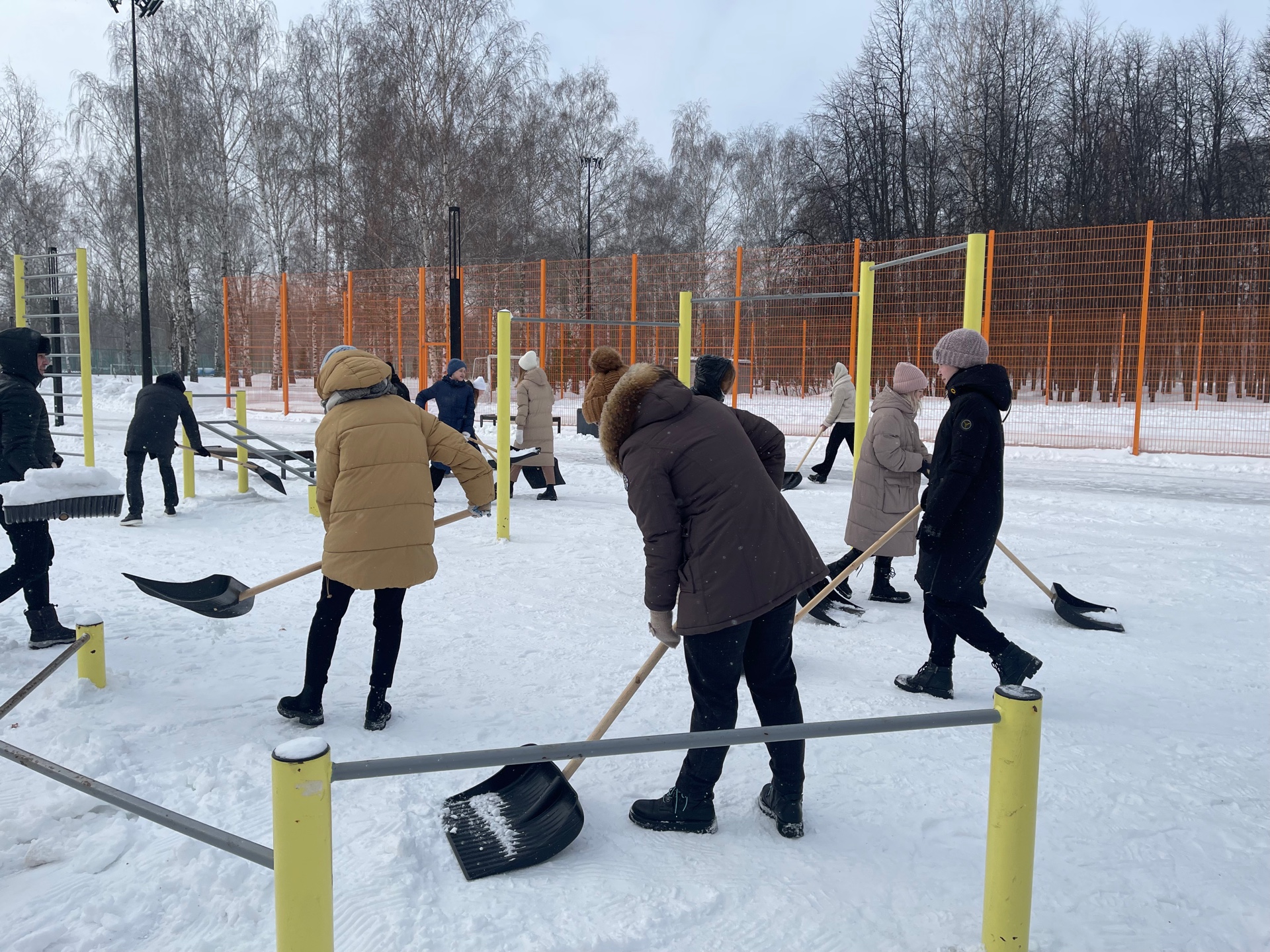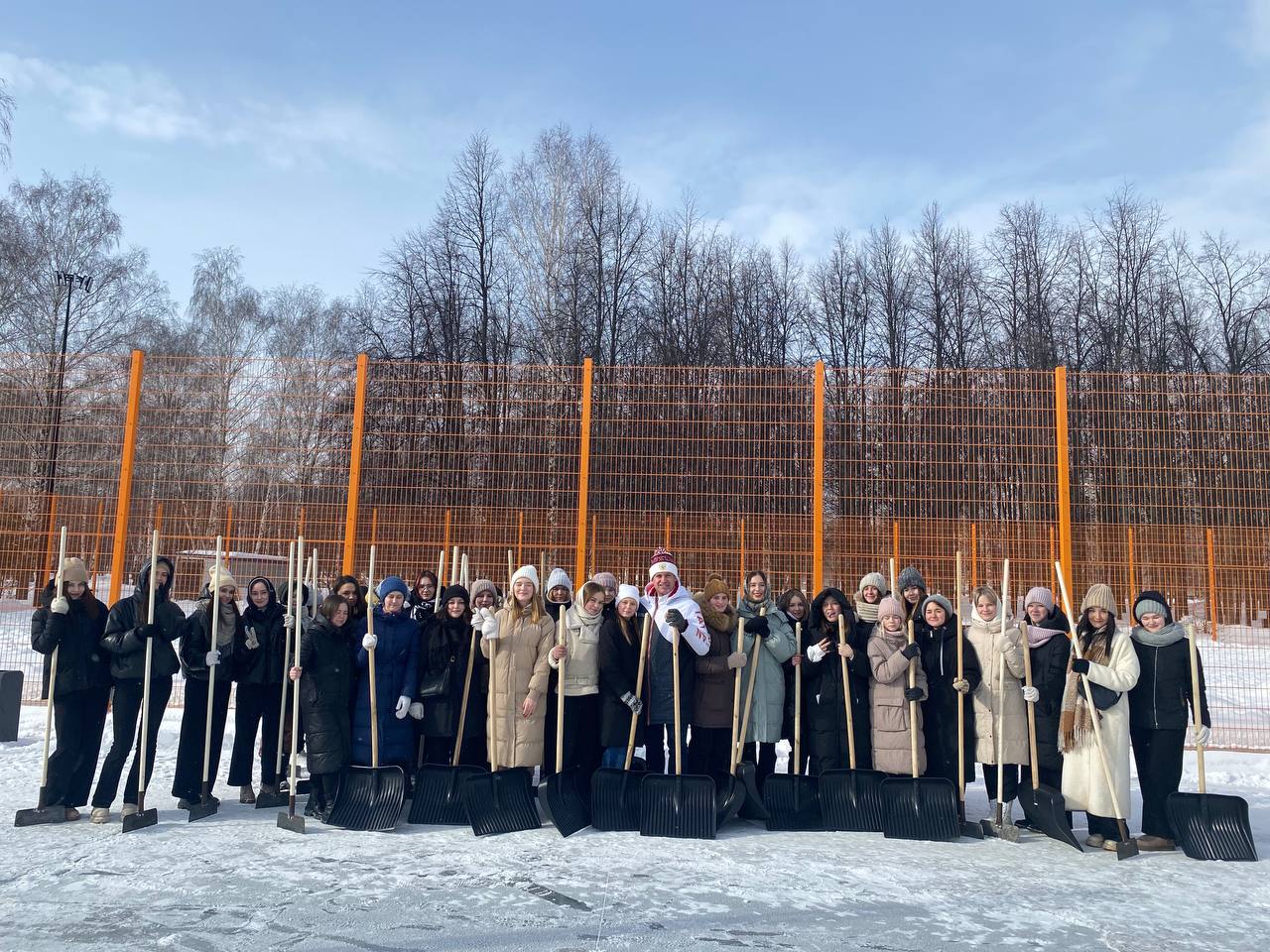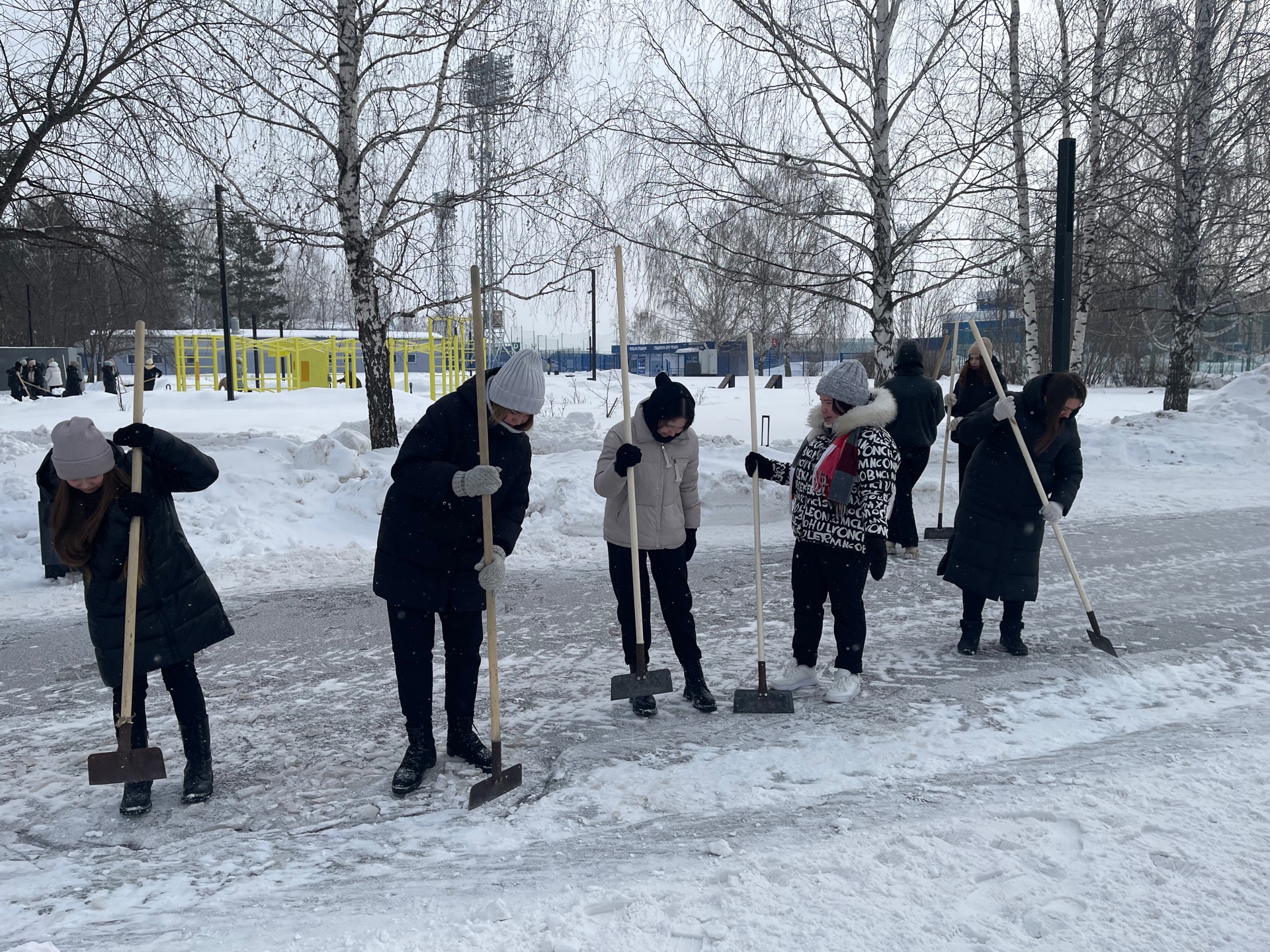 Студенты педагогического и политехнического, торгово-технологического колледжей - более ста человек - вышли в парк Гренада для уборки территории от снега и наледи.