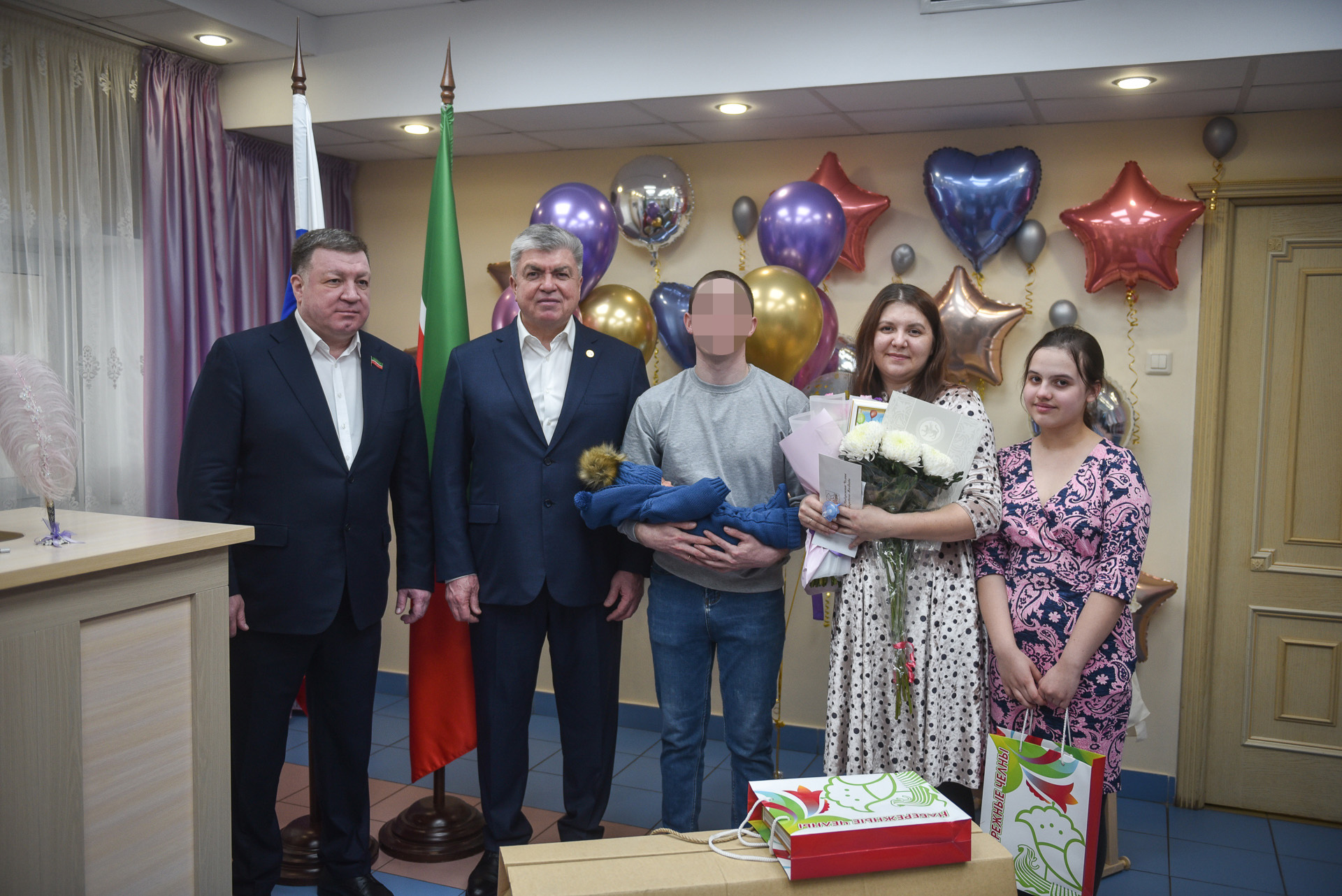 Мэр города Наиль Магдеев поздравил с рождением сына Кирилла и Наталью Шамакаевых. Мальчика назвали Иван, имя супруги выбирали вместе.