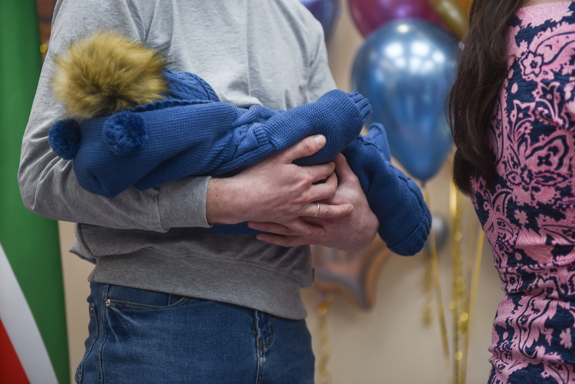 На выписку собралась вся большая и дружная семья, включая молодого отца. Кирилл Шамакаев выполняет задачи в ходе специальной военной операции, сейчас он в отпуске и вернулся, чтобы встретить жену и сына из роддома.