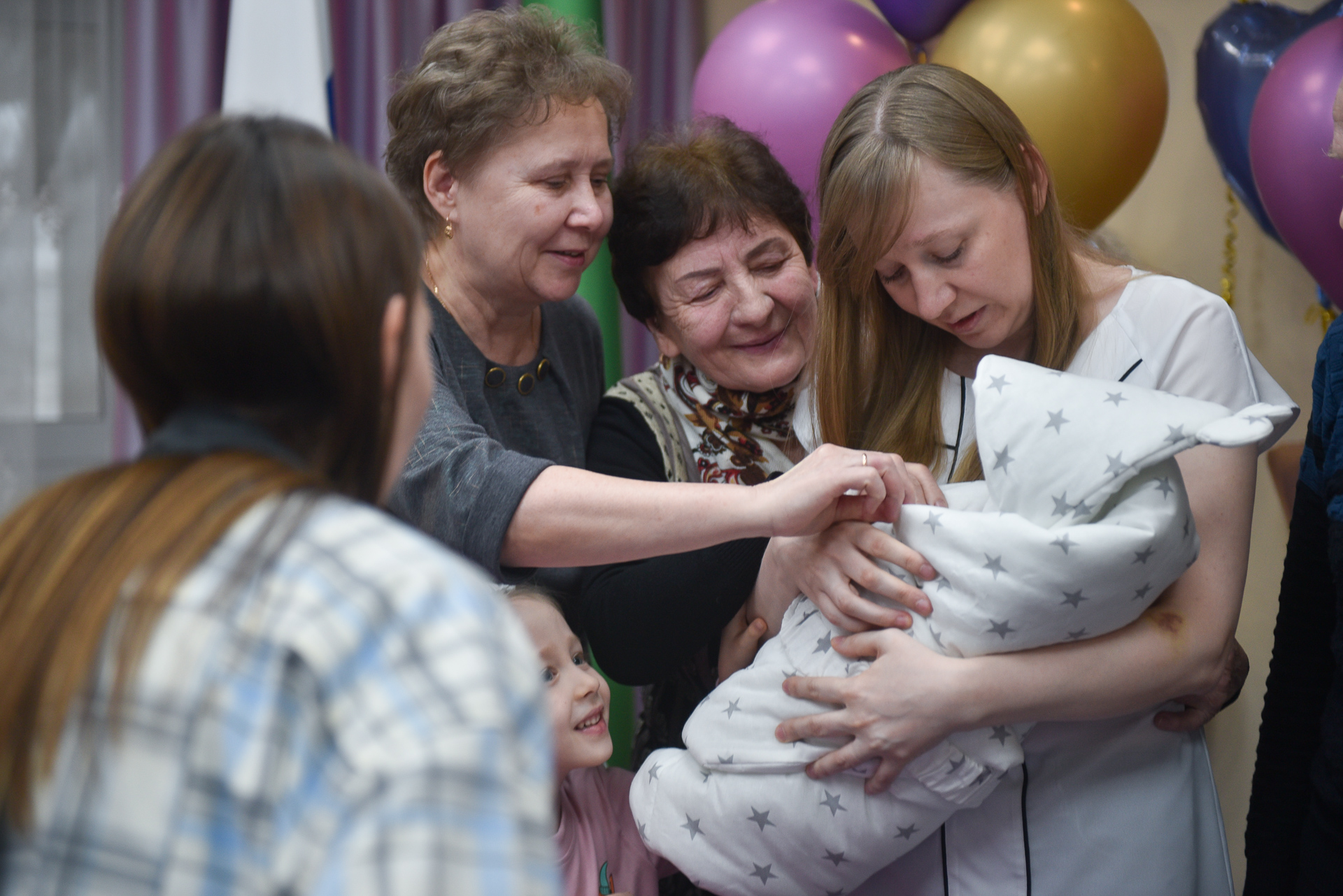 Встретить из роддома жену Руфину из зоны СВО в отпуск приехал Денис Лаптев. У молодых родителей уже есть дочь, она учится в 3 классе общеобразовательной школы. Новорожденную родители назвали Амелией.