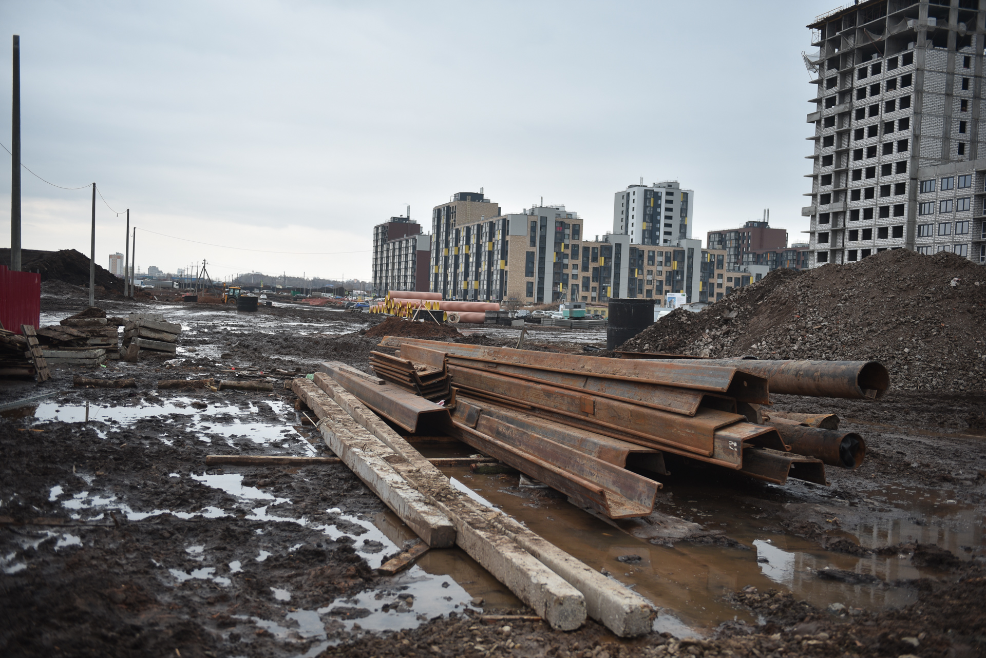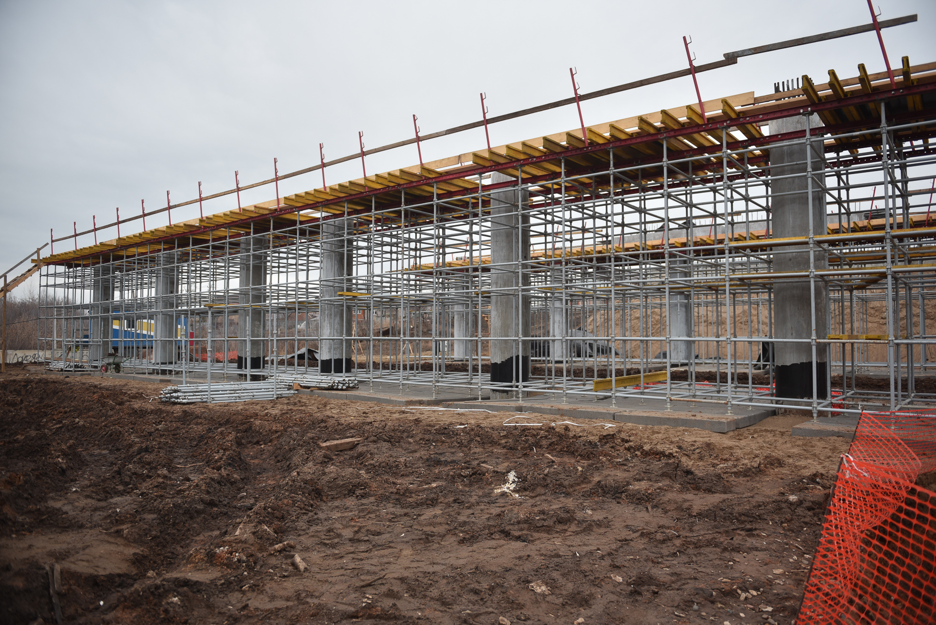 Строители работают в рабочем режиме, идет монтаж опор, на следующей неделе придут первые балки для монтажа.