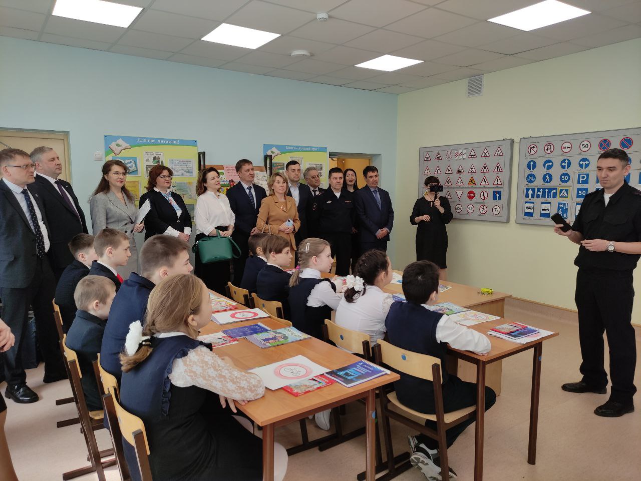 Каждый велосипедист и мастер шиномонтажа не может обойтись без знания знаков дорожного движения. Для этого для детей оборудовали специализированный класс БДД. Стенды с дорожными знаками и светофором оснащены с беспроводным управлением и программой виртуального учителя. В преддверии весенних каникул и открытия велосипедного сезона автоинспекторы провели для ребят открытый урок.