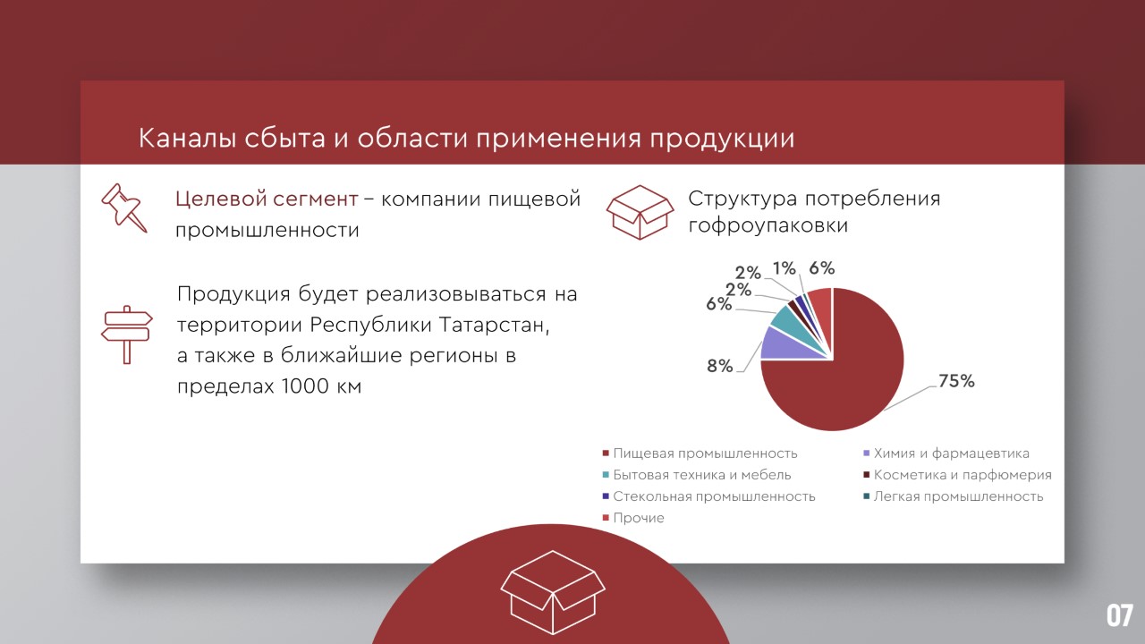 Четвертая компания, «Оском», планирует организовать производство гофрокоробов из трехслойного и пятислойного картона. Высокий спрос вызван развитием онлайн-торговли с сервисов доставки, а также развитием импортозамещения. Продукция будет реализовываться на территории Республики Татарстан, а также в ближайших регионах. «Рынок не насыщен производством, это хорошее вложение, – оценил конкурентоспособность генеральный директор компании Алексей Антонов. – На проектную мощность рассчитываем выйти в 2025 году. Оборудование позволяет делать пятислойный картон, это плотная упаковка в том числе для саморезов, он очень востребован».