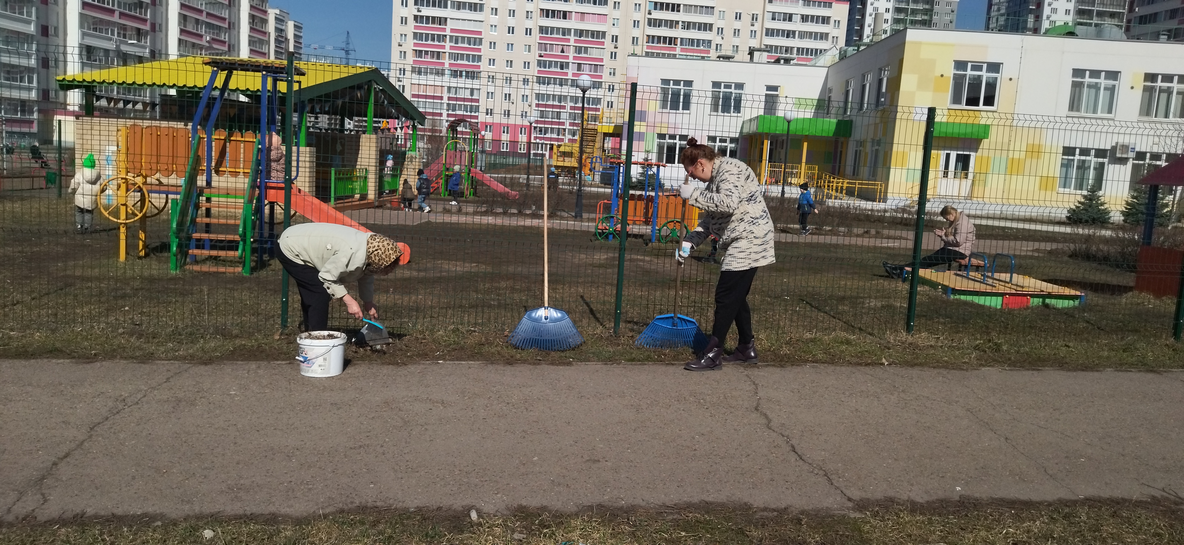 Управляющие компании продолжают очистку и благоустройство придомовых территорий: прочесывание газонов, уборка мусора, сбор и вывоз листвы.