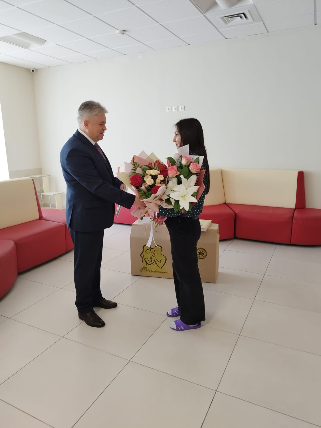 Поздравить молодую маму Дину приехали глава администрации Автозаводского района Винер Харисов и представители дилера «КАМАЗ» в Оренбурге и родственники.