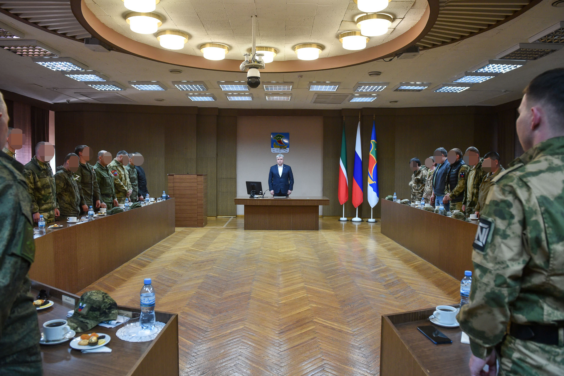 Аплодисментами военнослужащие поблагодарили мэра города за решение вручать молодым мамам по 100 тысяч рублей на нужды новорожденных детей мобилизованных граждан. Наиль Магдеев добавил, что семьям вручаются подарки от республики, депутатского корпуса.