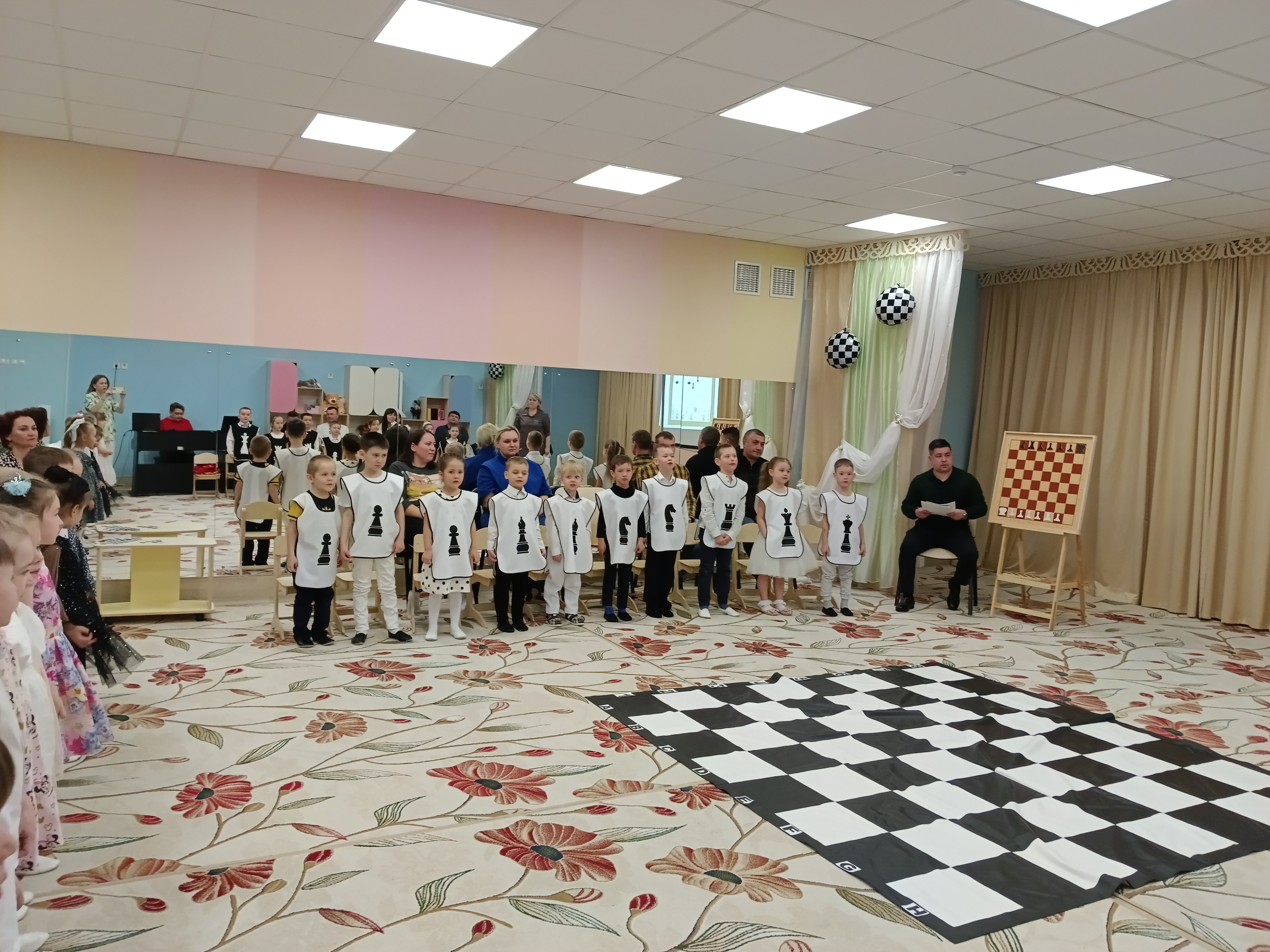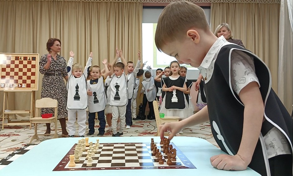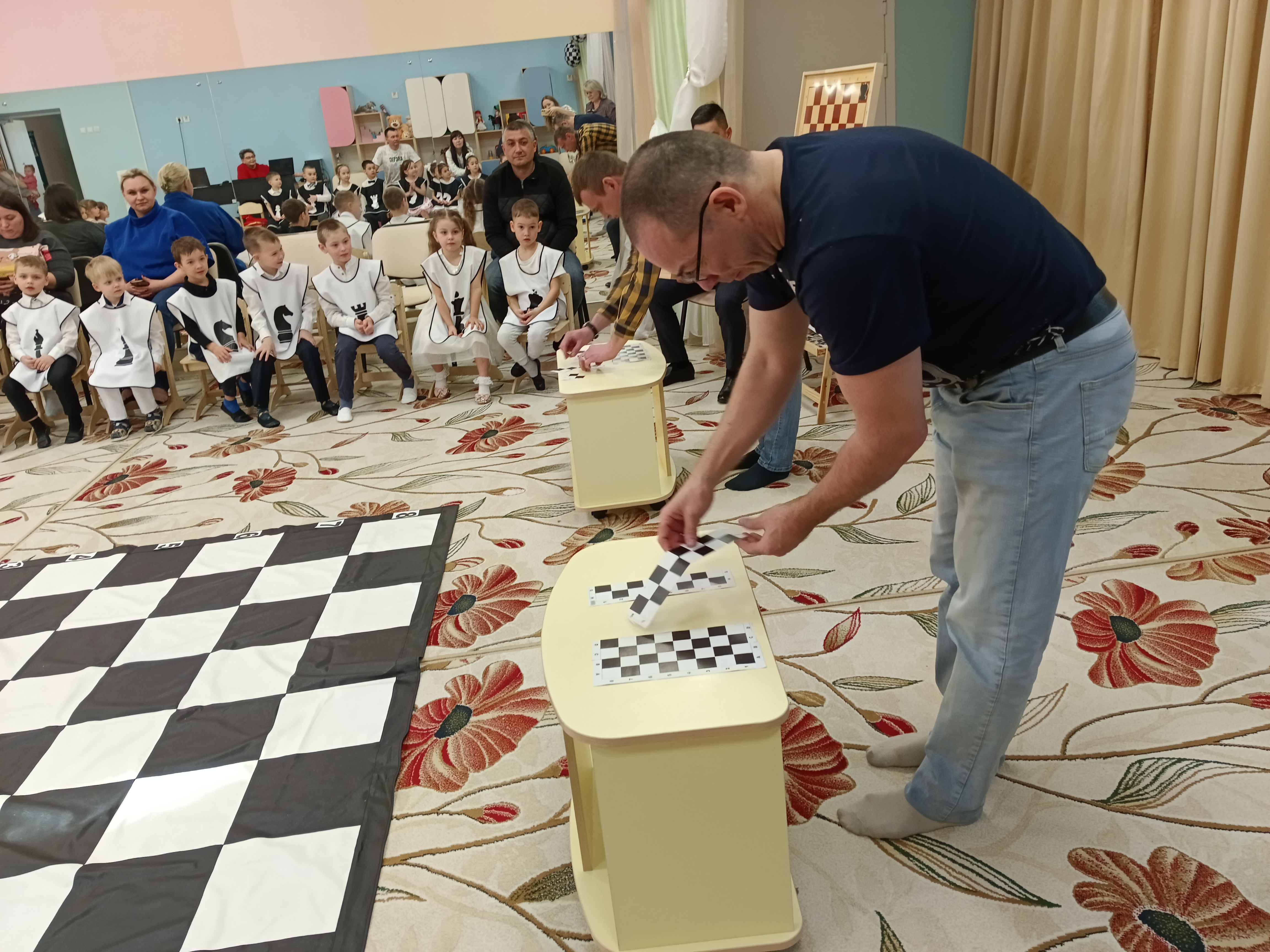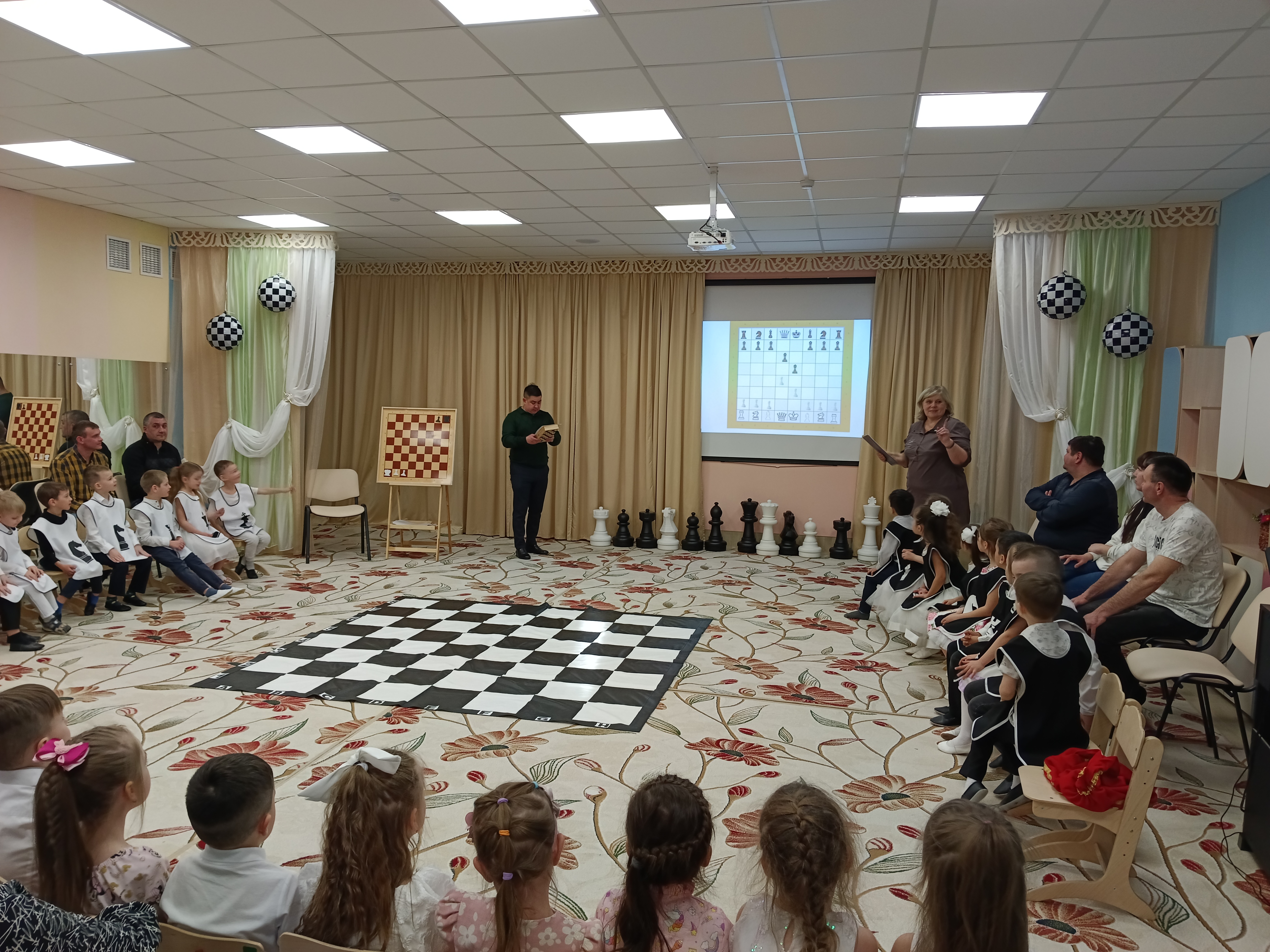 Мероприятие украсил шахматный гроссмейстер, в роли которого выступал один из родителей. Папа легко вжился в роль и виртуозно справлялся со своей задачей.