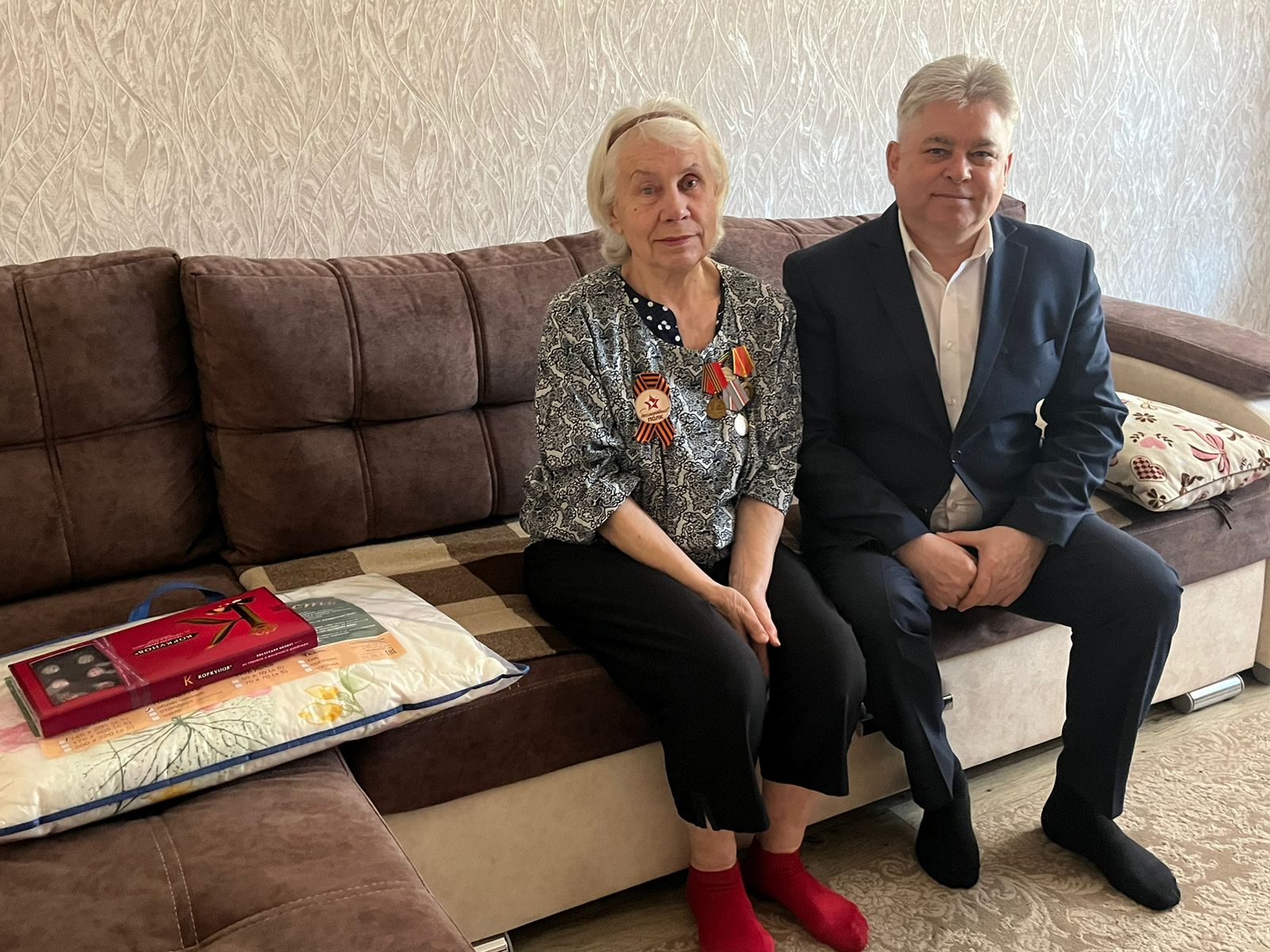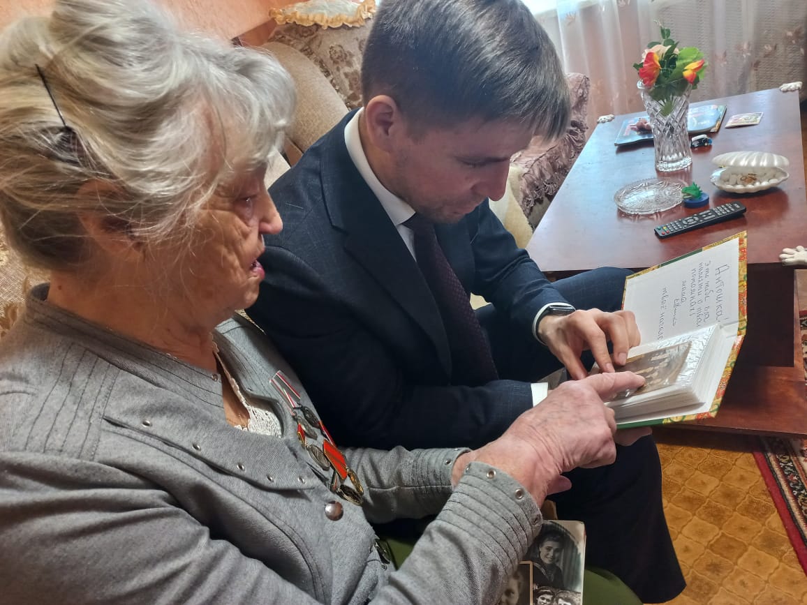 Глава администрации Комсомольского района Ленар Ахметзянов пришел в гости к ветерану Великой Отечественной войны Елене Антоновне Мищенко.
