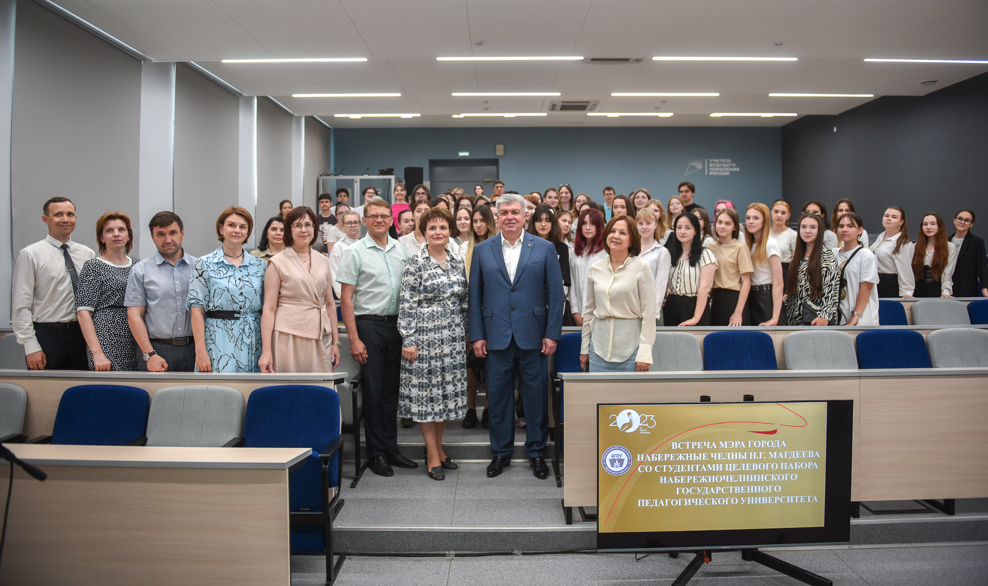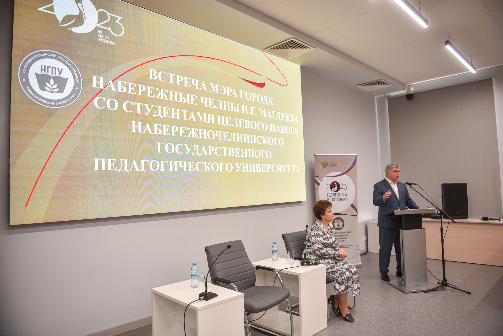 Мэр города Наиль Магдеев посетил Набережночелнинский государственный педагогический университет, чтобы пообщаться со студентами, которые обучаются по целевому направлению. Сегодня это 56 студентов, из них 32 студента получают высшее образование (за них частично платит республиканский бюджет, частично это федеральная квота) и 24 студента – средне-профессиональное. Оплату за их обучение взял на себя городской бюджет. Большая часть студентов осваивают учебную программу успешно.
