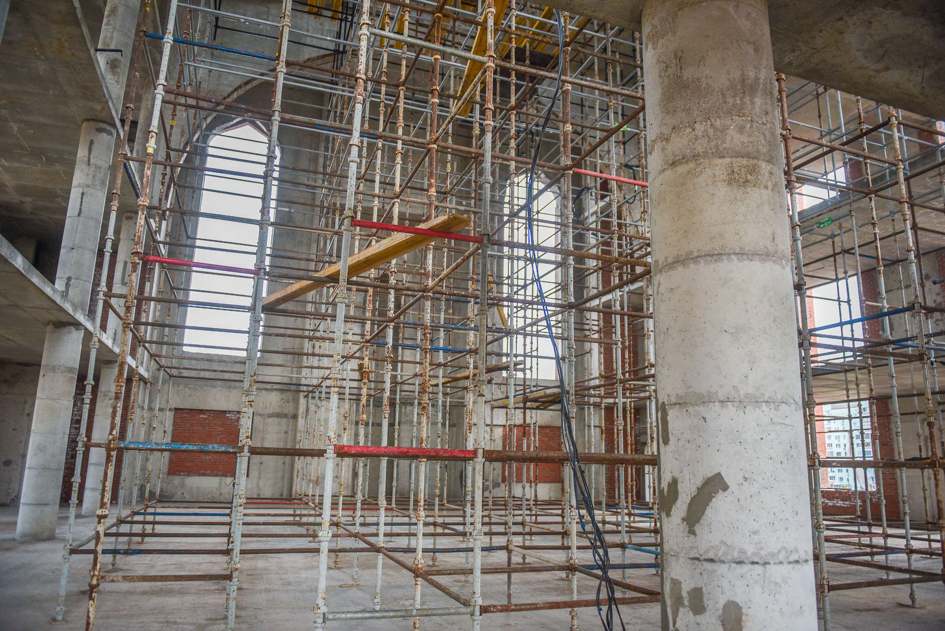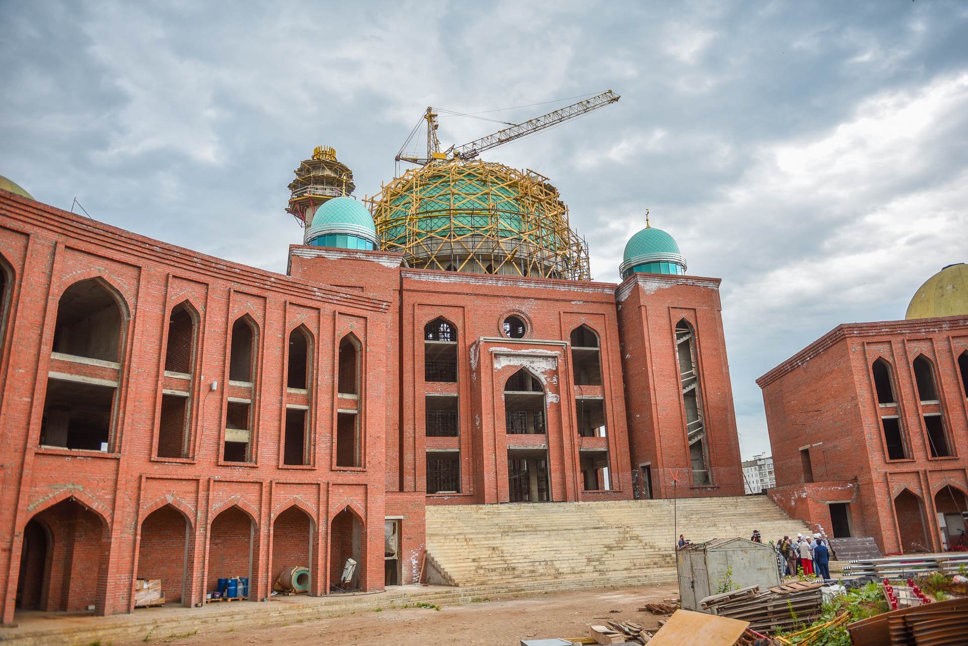 В соборной мечети Джамиг идут строительные работы, мэр города Наиль Магдеев прошел по периметру здания, вошел внутрь, оценил работы, которые уже сделаны строителями.