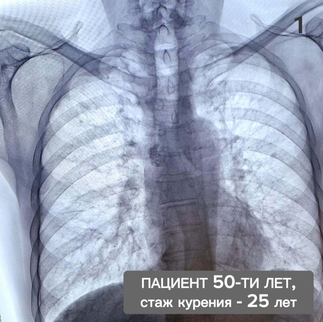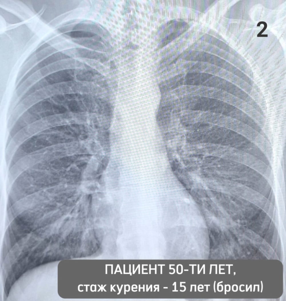 «Ренгенографию прошли мужчины-ровесники. Им по 50 лет. Первый не может, не задыхаясь, подняться на 3 этаж, второй – уже 5 лет ходит в пешие походы по самым живописным уголкам страны, - рассказал врач-рентгенолог поликлиники №5 Челнов Рамзиль Гильметдинов. – Один пациент отказался от вредной привычки и теперь дышит полной грудью, другой - страдает хроническим бронхитом, пневмосклерозом, одышкой, имеет нарушение сердечного ритма».