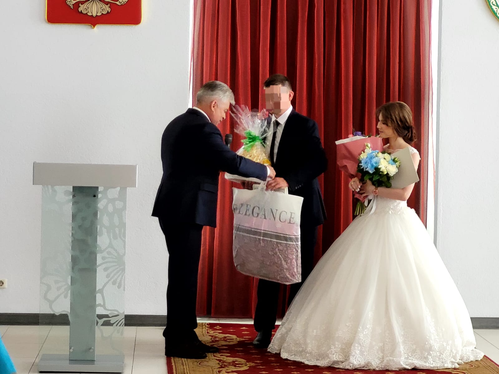 Он вручил подарок и пожелал семейного счастья, любви, гармонии и взаимопонимания.
