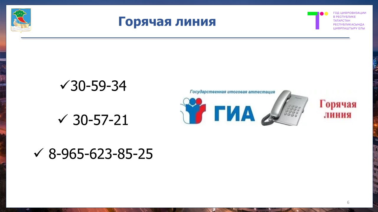 По вопросам ОГЭ и ЕГЭ можно обратиться на горячую линию – 30-59-34, 30-57-21.