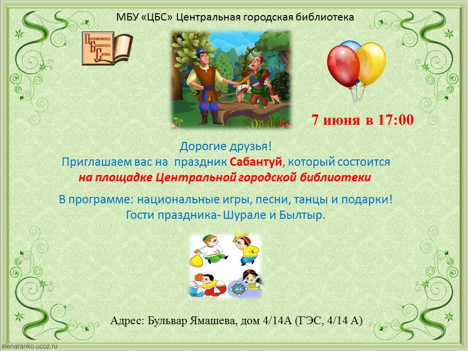 7 июня в Центральной городской библиотеке пройдет самый любимый и долгожданный праздник детей и взрослых – Сабантуй.