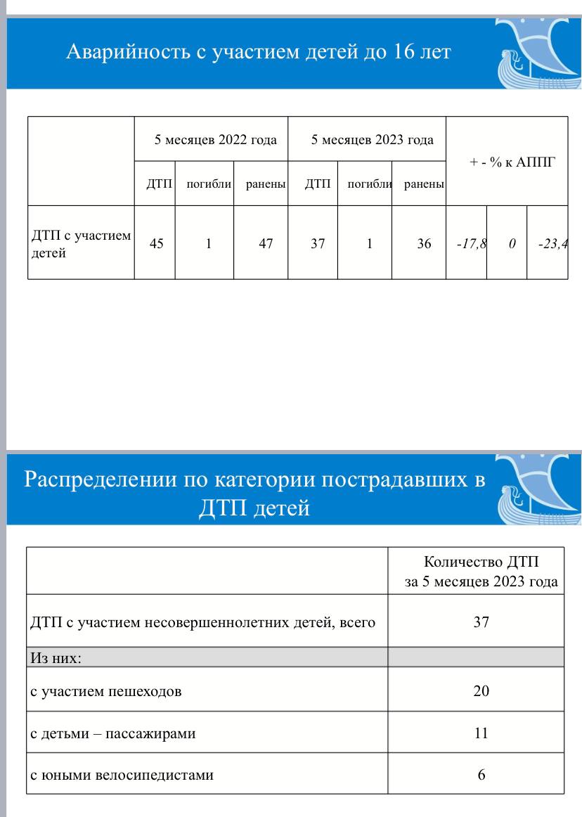 С участием детей в возрасте до 16 лет произошло 37 ДТП, в которых 1 ребенок погиб и 36 несовершеннолетних получили травмы различной степени тяжести. Отмечается снижение количества ДТП на 13%, раненых на 15%. Число погибших осталось на уровне прошлого года.