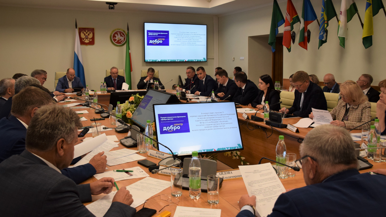 На основную повестку вынесли вопрос о работе органов местного самоуправления Республики Татарстан по поддержке и развитию центров общественного развития «Добро.Центр» и движения «Ярдәм янәшә! Помощь рядом!» в рамках всероссийской акции «#МыВместе». С докладом на эту тему выступил министр по делам молодежи Республики Татарстан Ринат Садыков.