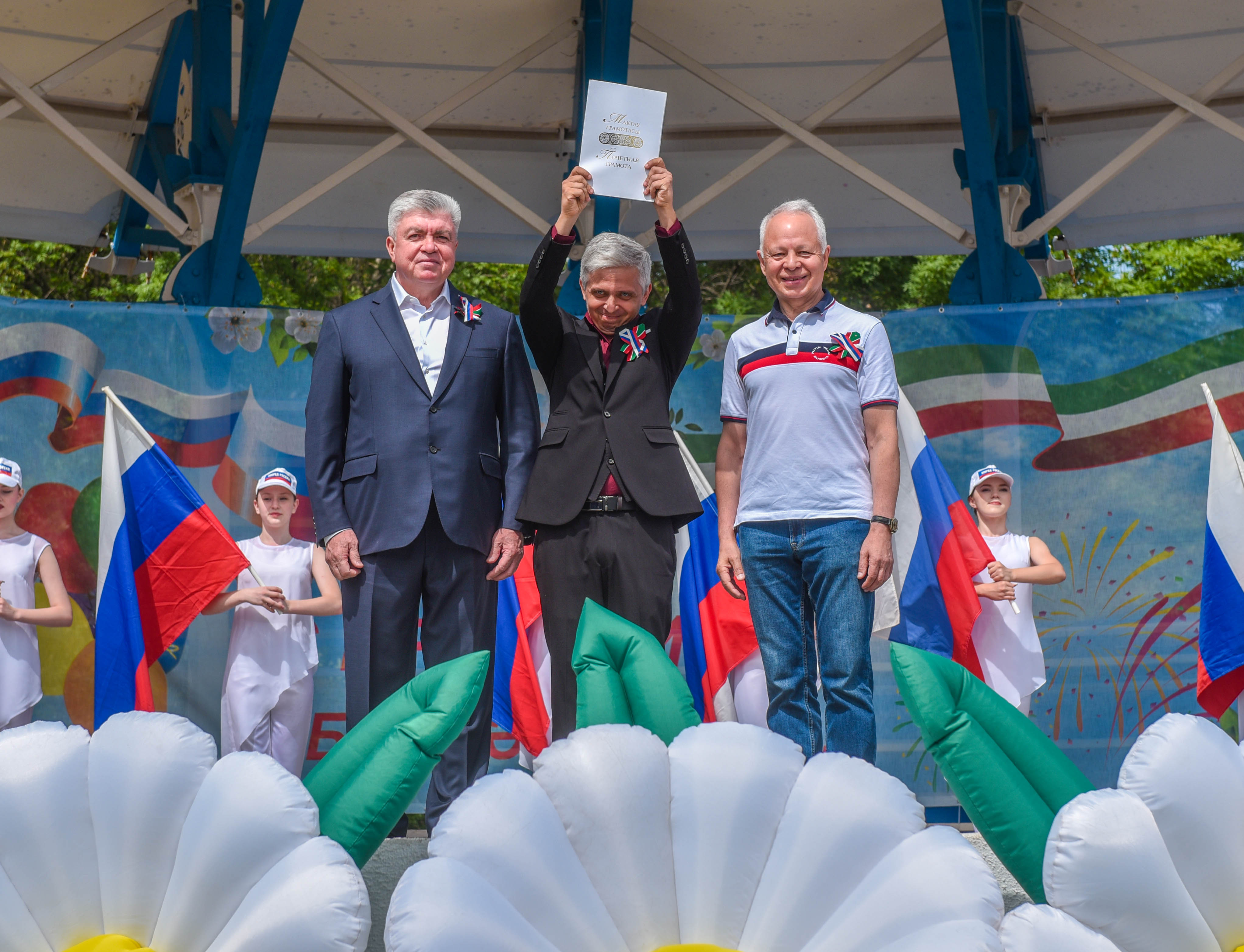 «Сегодня в этот теплый, по-душевному прекрасный солнечный день вся наша страна отмечает особый, великий праздник – День России. Этот праздник особенный, потому что в такие дни мы осознаем, что мы великий, многонациональный и могучий народ. Наш автоград сегодня был, есть и будет неотъемлемой частью Российской Федерации. Мы любим и гордимся нашим городом, нашими людьми – это и есть наша Великая Россия. Во все времена наша страна проявляла мужество, отвагу и героизм. Россия была, Россия есть, Россия будет!», – поздравил присутствующих Наиль Магдеев.