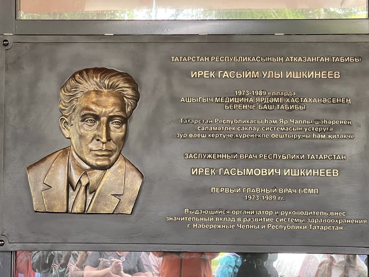 Сегодня в Набережных Челнах состоялось открытие мемориальной доски с барельефом первому главному врачу БСМП – Иреку Ишкинееву. В торжественном открытии приняли участие руководитель Исполнительного комитета Фарид Салахов, начальник управления здравоохранения Рустам Нугманов. На церемонии присутствовали сыновья и родственники Ирека Гасымовича Ишкинеева. Семья переехала в строящийся город на Каме 50 лет назад.