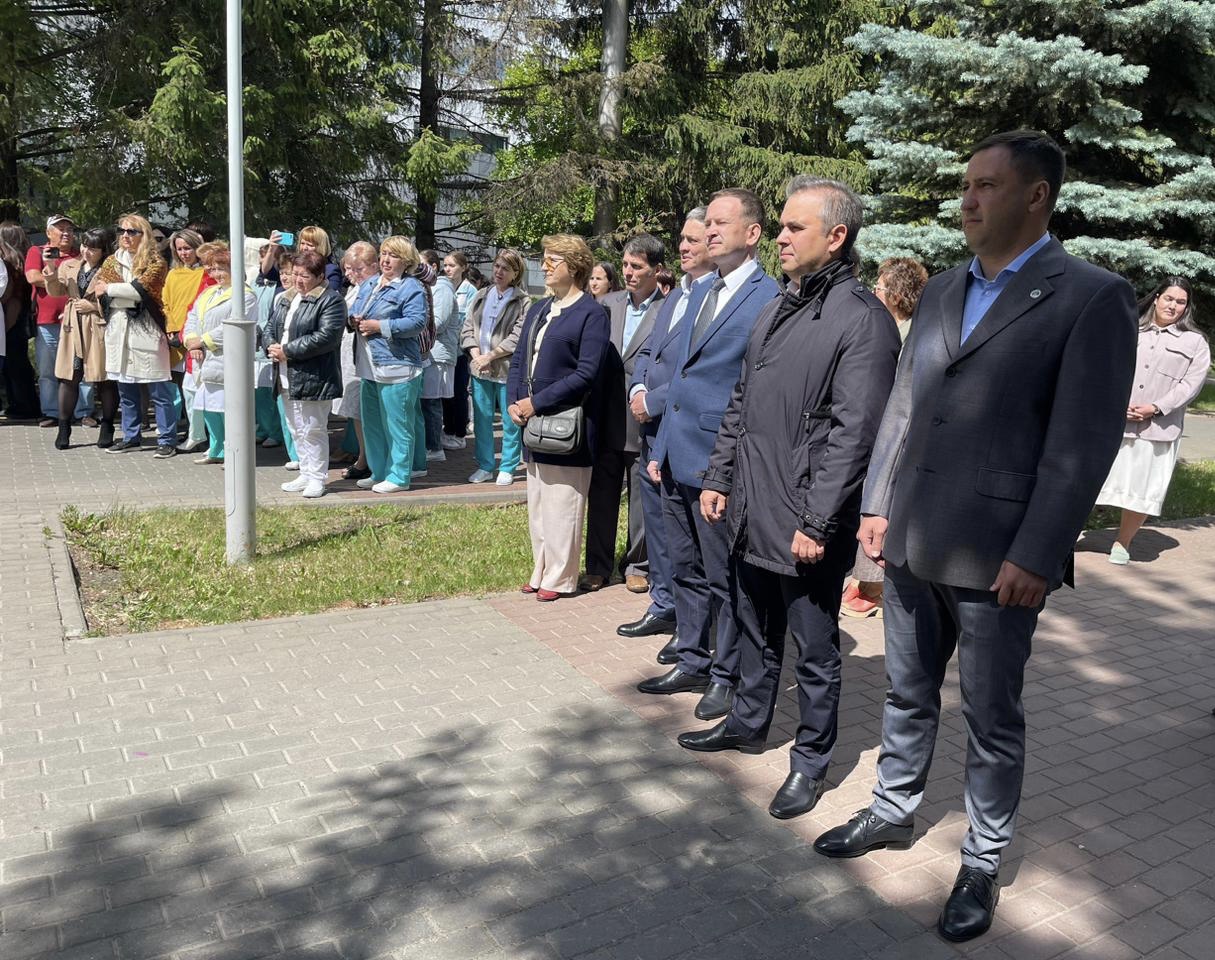 Завершилось мероприятие минутой молчания и возложением цветов к мемориальной доске. Собравшиеся возложили красные розы у памятного места.