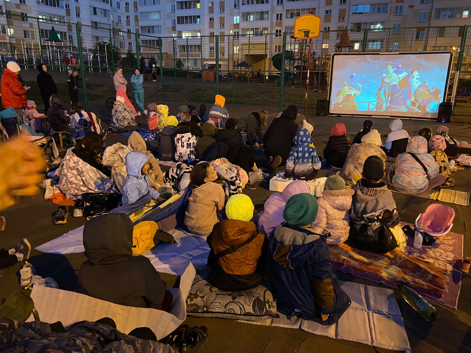 В Центральном районе продолжаются показы мультфильмов во дворах.