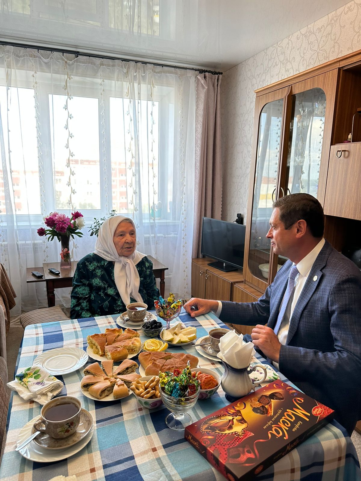 Ветерана поздравили глава Центрального района Эдуард Фаттахов, представители УК «Паритет». В кругу семьи юбиляру вручили поздравительные письма и подарки.