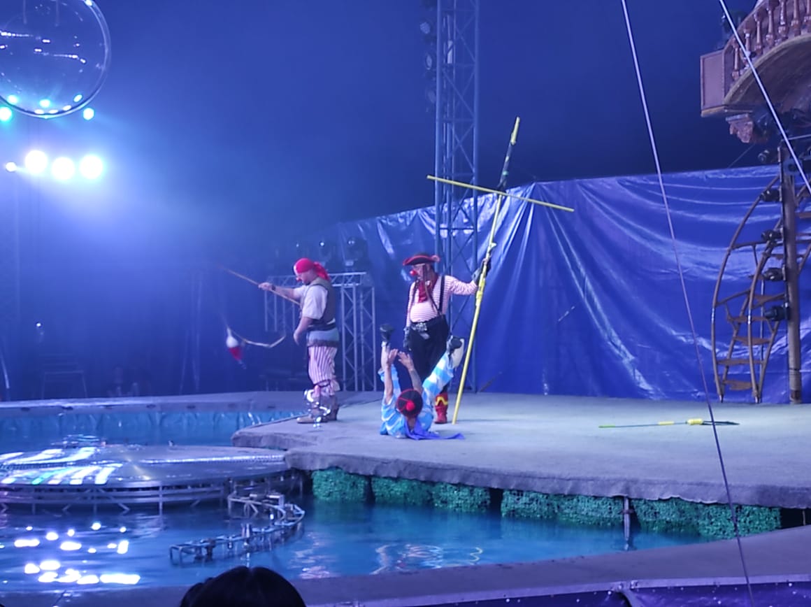 Для семей мобилизованных Центрального района накануне было устроено красочное представление цирка на воде.