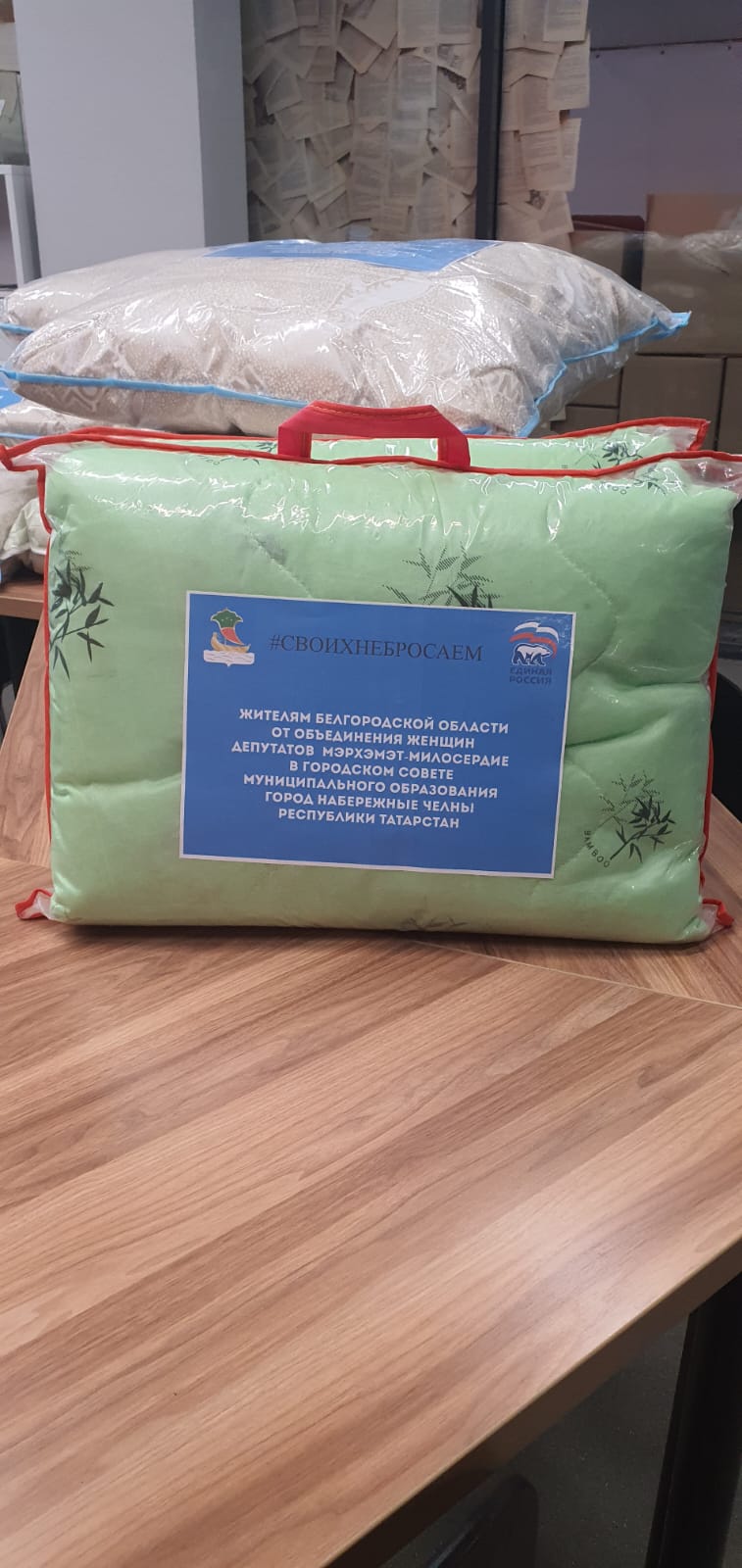 На собственные средства женщины-депутаты приобрели одеяла и подушки для жителей Белгородской области, которые вынуждены были покинуть свои дома и отправиться в пункты временного размещения.