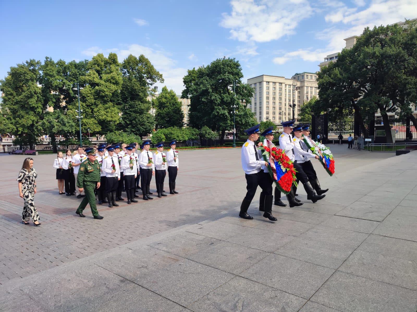 Сегодня победители конкурса «Лучший часовой поста №1» возложили венки и цветы в Александровском саду в Москве.