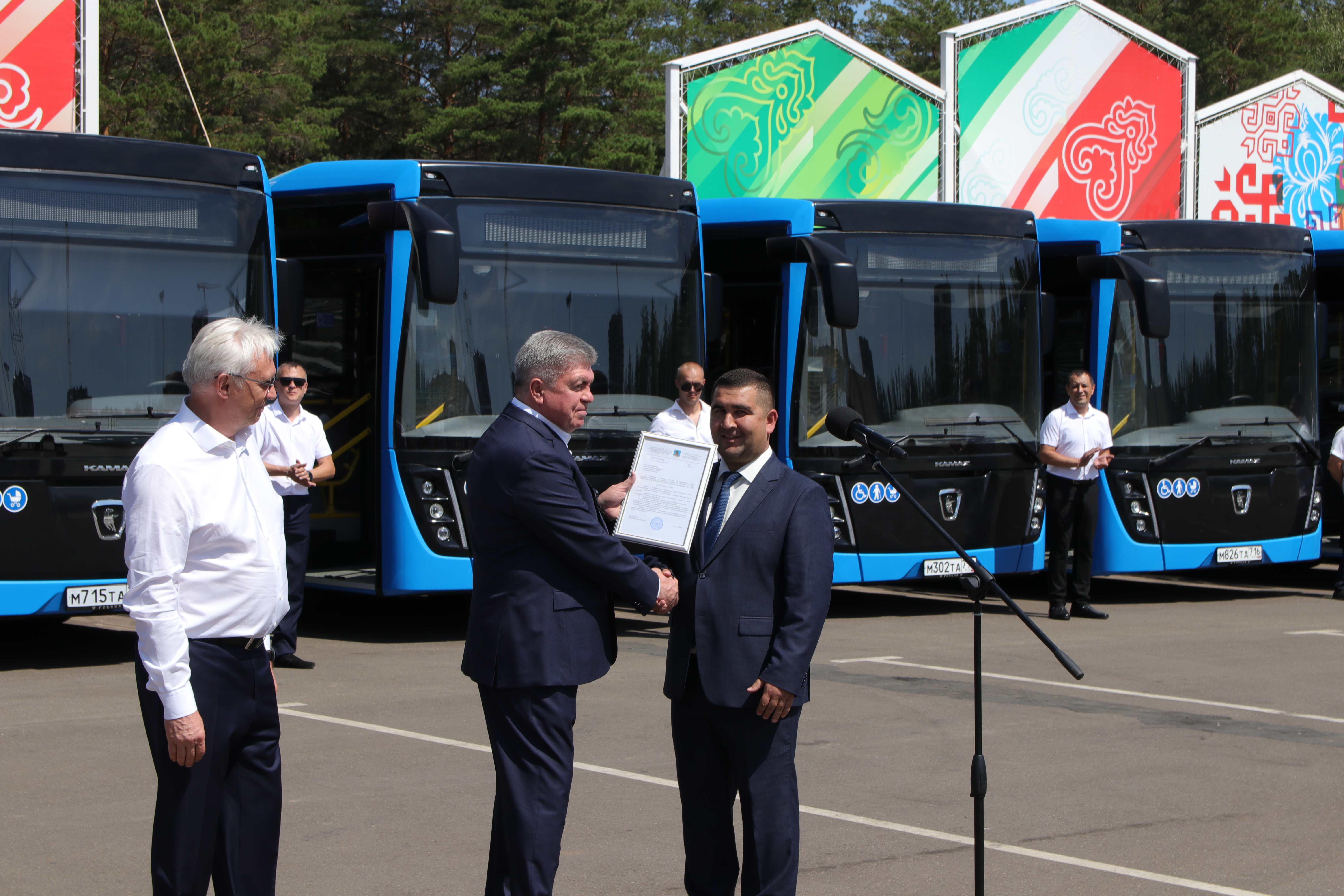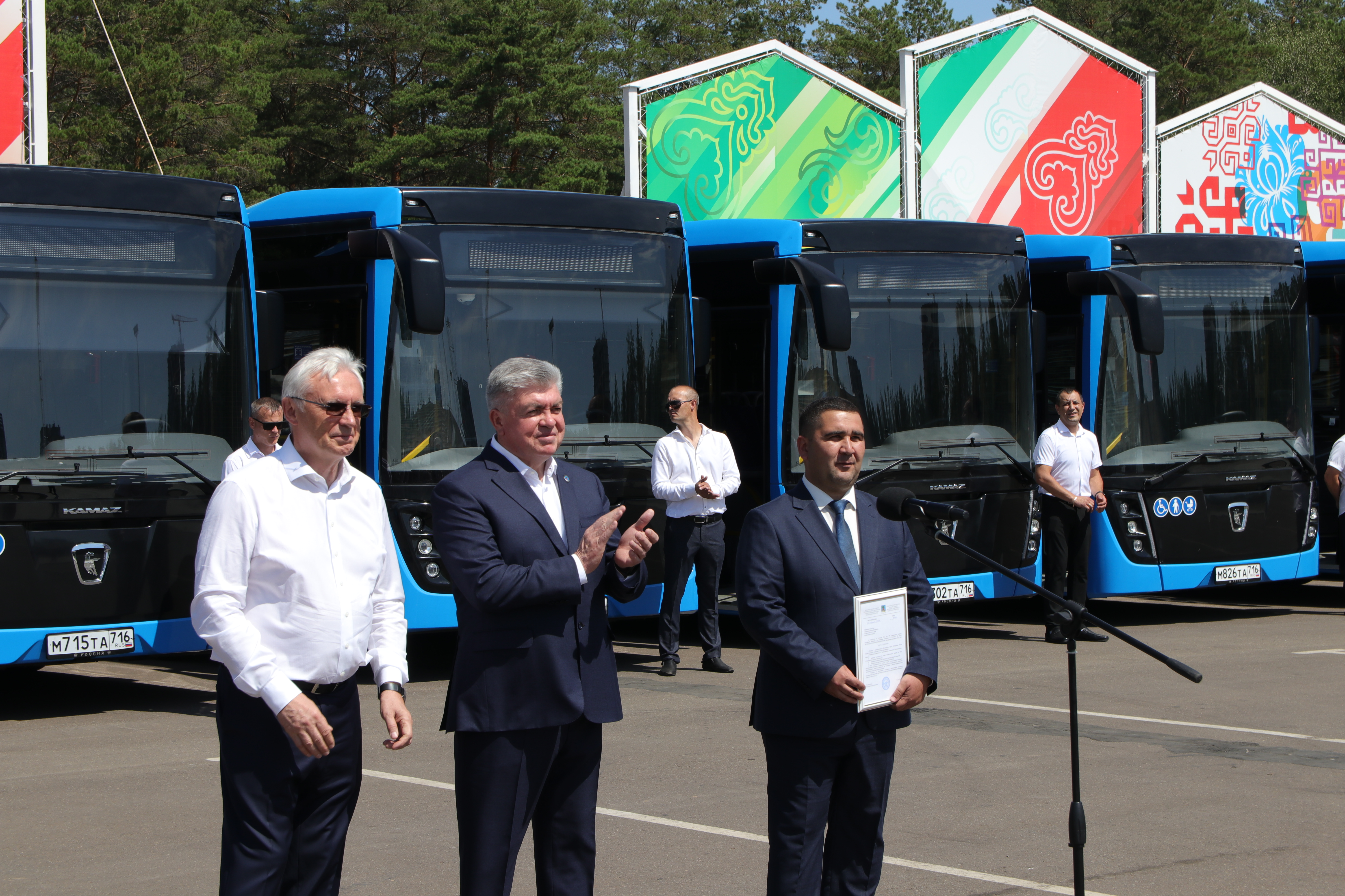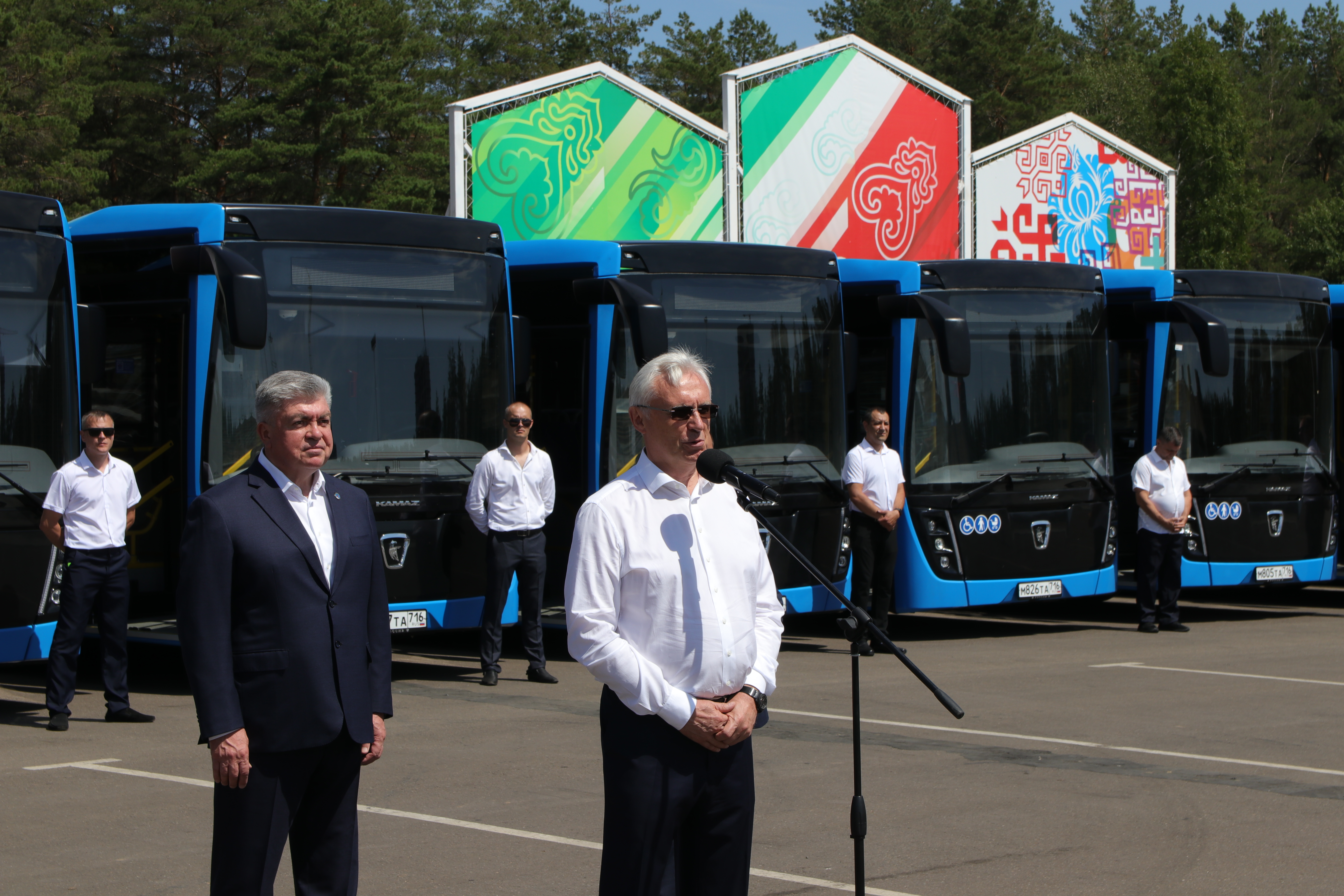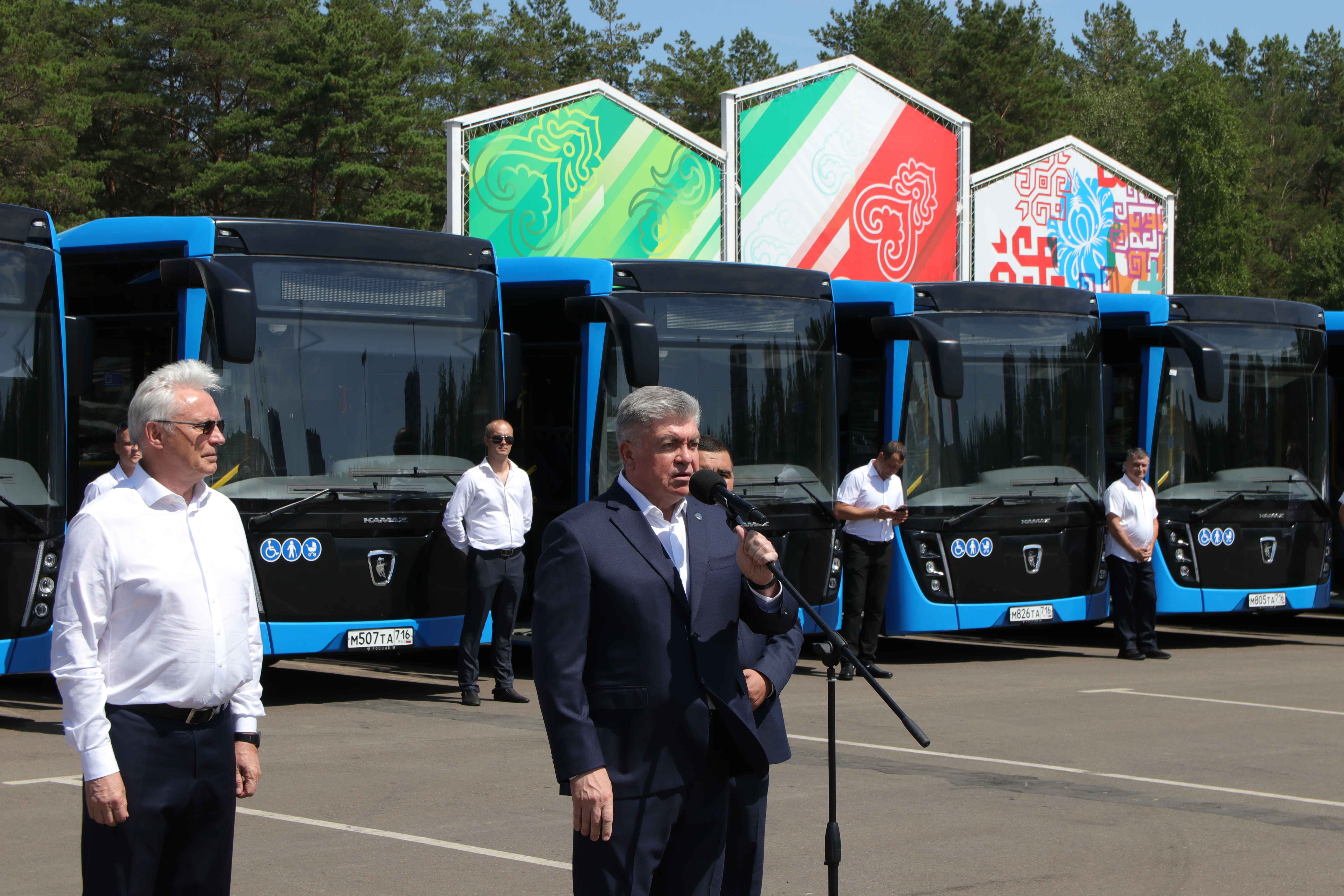 Генеральный директор «КАМАЗ» Сергей Когогин обратился к присутствующим: «80% продукции компании составляет пассажирская техника. По уровню конструкции, качеству отделки салона мы создали самую передовую технику, чтобы восемь часов работы водителя были удобными и комфортными. Президент нашей страны Владимир Владимирович Путин уделяет особое внимание пассажирскому транспорту: разработаны разные государственные программы по поддержке транспорта крупных и средних городов. Наша республика и Набережные Челны сумели включиться в гонку за получение части федеральных денег и создать все условия для перевозки пассажиров в комфортных условиях города», – произнес руководитель.