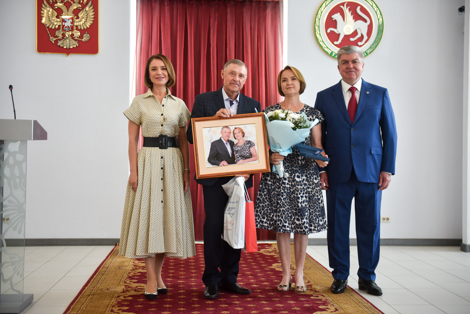 Медаль «За любовь и верность» вручена семье Муртазиных Ильгизару Анасовичу и Флюре Рафаиловне. Ильгизар Анасович – заслуженный артист Республики Татарстан, популярный татарский композитор, автор-исполнитель более 50 песен. Флюра Рафаиловна – медсестра, заботилась о здоровье горожан, работая в роддоме и медсанчасти.