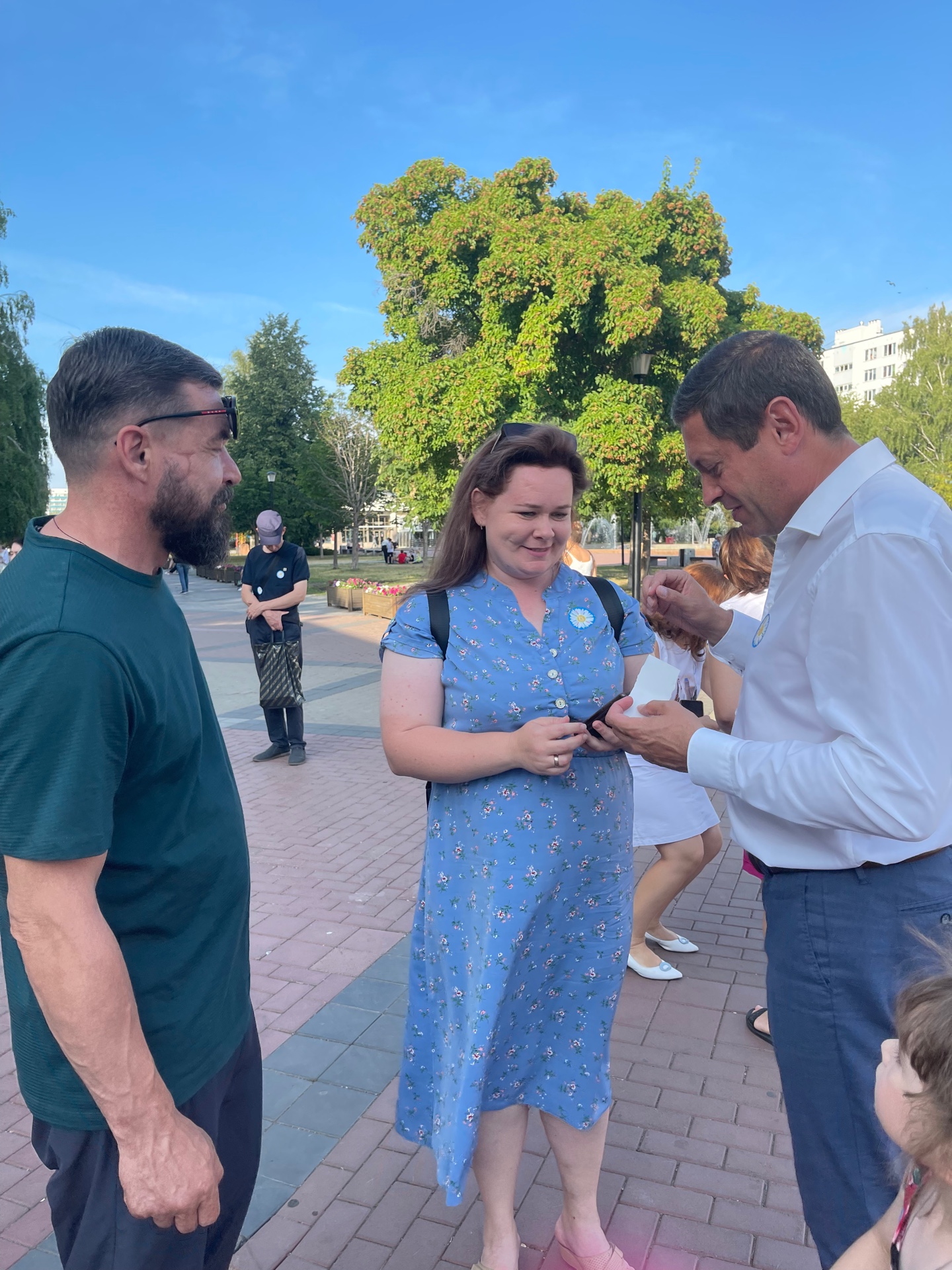 Для челнинцев с трогательными номерами выступили творческие коллективы центра культуры «Кызыл тау». Также стартовала акция «Подари ромашку на счастье». Сотрудники администрации района и волонтеры молодежного центра «Нур» дарили челнинцам яркие стикеры с изображением ромашки.