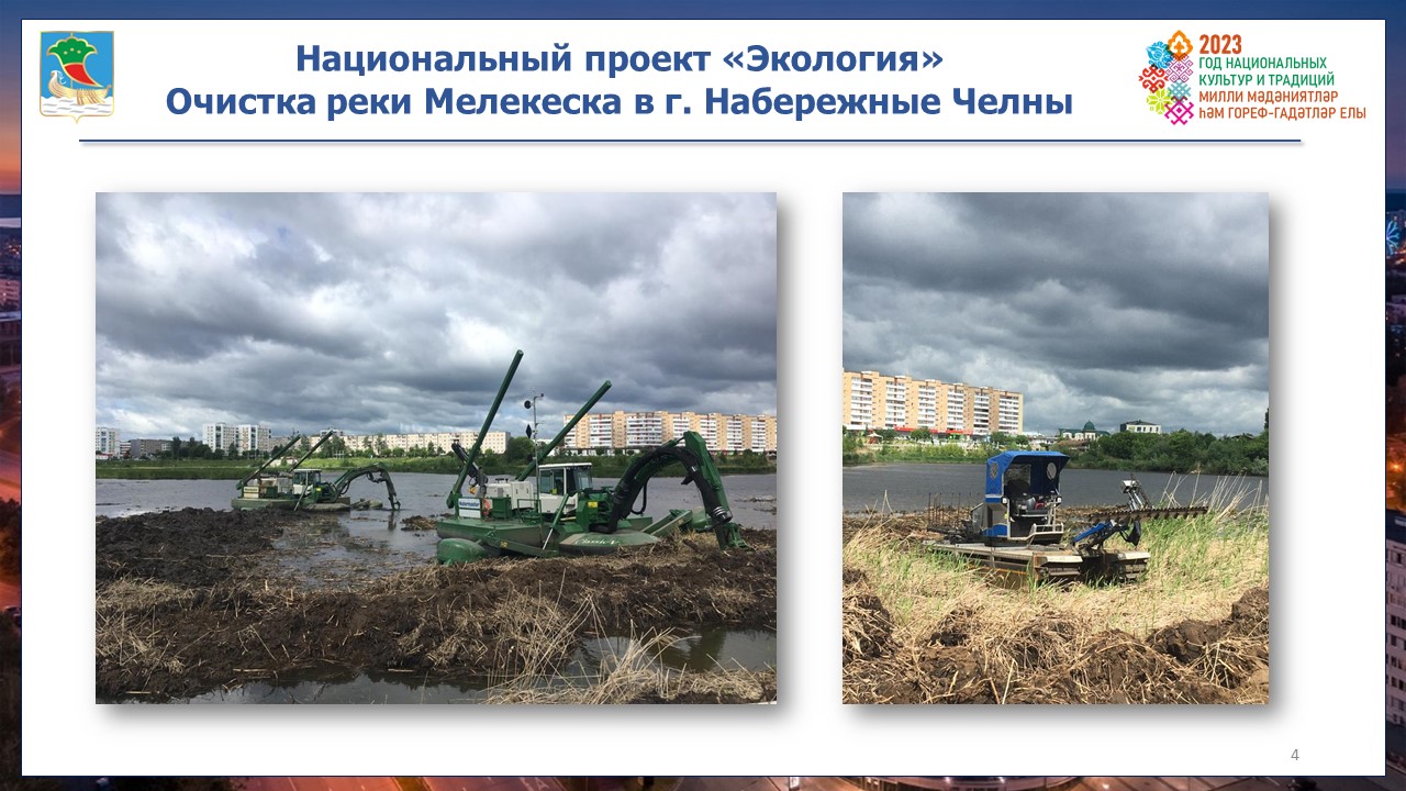 В дополнение к природоохранным мероприятиям на территории города Набережные Челны в рамках федерального проекта «Сохранение уникальных водных объектов» национального проекта «Экология» реализован проект по расчистке дна реки Мелекеска.