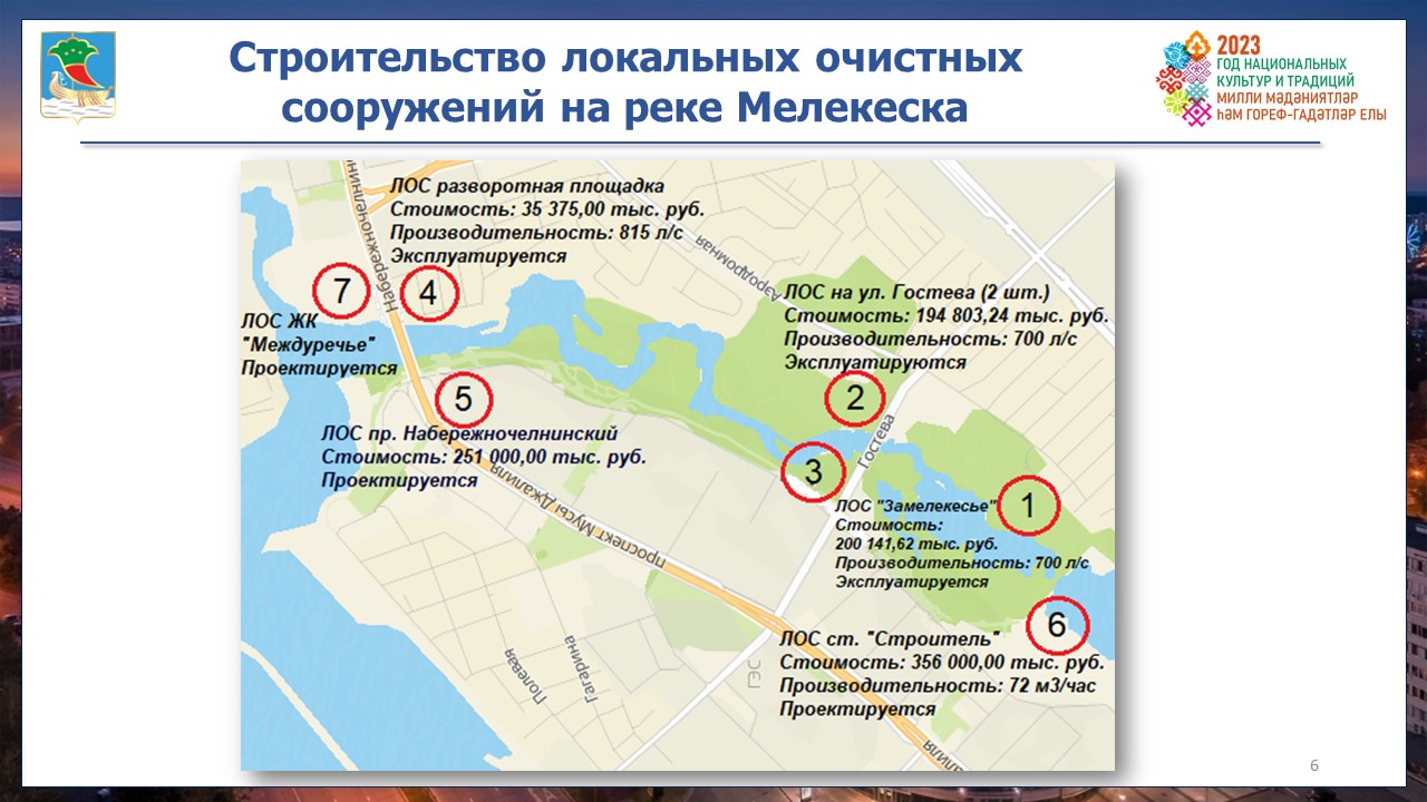 Ведётся проектирование трех локальных очистных сооружений: набережной им. Г. Тукая в районе 5 комплекса и пересечения с проспектом М. Джалиля и в районе ЖК «Междуречье».