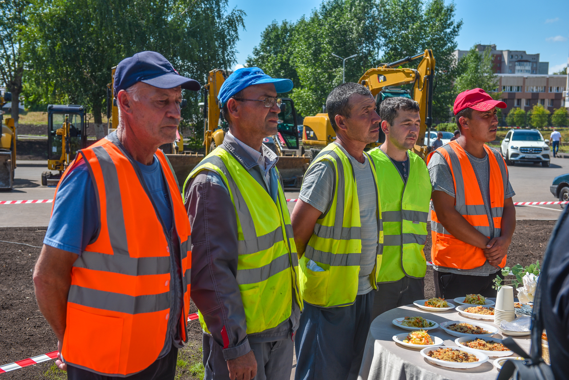 Для строителей выступили артисты города, был организован обед. Строителей угостили ароматным пловом, салатами, компотом и выпечкой.